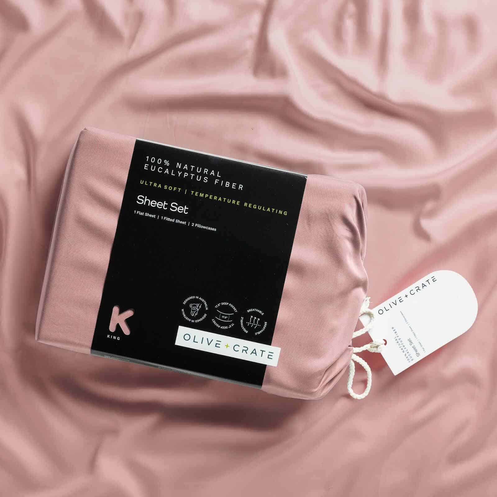 Juego de sábanas King Size Olive + Crate Luxury -Rosado Rubo