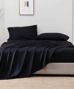 1. SUAVES COMO LA SEDA Y EXTREMADAMENTE SUAVES – Hechas de 100% viscosa de bambú, estas sábanas ofrecen una opción de lujo. Su tejido especial deja los materiales sintiéndose más sedosos y a menudo más lujosos. Basta con pasar las manos por nuestro juego de sábanas para descubrir lo suaves y sedosos que realmente son. Cada hilo es extremadamente suave y muestra un increíble caída. 2. SÁBANAS REFRESCANTES Y QUE ABSORBEN LA HUMEDAD – Las sábanas de viscosa derivada del bambú son más transpirables que el algodón, lo que significa que las sábanas están diseñadas para mantenerte fresco en las noches calurosas de verano y cálido durante los fríos inviernos. Nuestras sábanas hechas de viscosa de bambú son la opción ideal para personas calurosas porque absorben la humedad y contribuyen a una buena noche de sueño. 3. JUEGO DE SÁBANAS KING SIZE – Incluye 1 sábana plana 108″x102″, 2 fundas de almohada 20″x40″, 1 sábana ajustable 78″x80″+16″, fue diseñado para adaptarse a casi todos los colchones de hasta 16″ de profundidad y el diseño de elasticidad en todo su contorno permite que se mantenga en su lugar y no se salga. 4. CERTIFICADO OEKO-TEX & ALTO GSM – Todos nuestros tintes, auxiliares y juegos de cama están certificados por OEKO-TEX. Con 140 gramos por metro cuadrado (GSM), más alto que la mayoría de las sábanas de viscosa de bambú en el mercado, y aún así ofrecen la máxima suavidad y ligereza. Un recuento de 300 hilos hace que las sábanas sean más suaves y lisas que las sábanas de algodón con un recuento de 1000 hilos. 5. FÁCIL CUIDADO – Las sábanas de cama twin xl de 3 piezas son completamente lavables a máquina para un mantenimiento sin complicaciones, estas suaves sábanas también están tratadas con una técnica de teñido única que mantiene los colores vibrantes lavado tras lavado. Simplemente tíralas en un ciclo suave con agua fría.