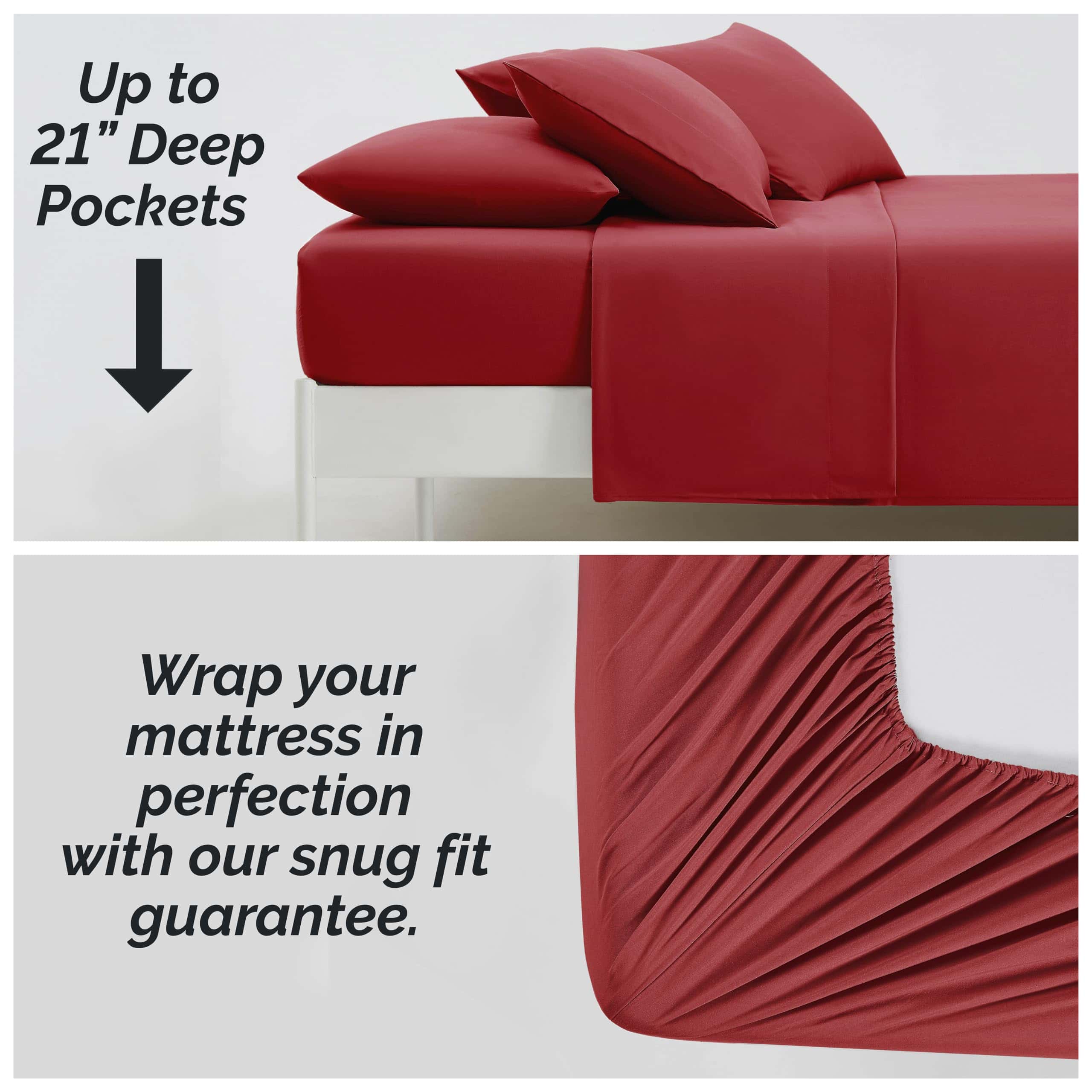 2. SÁBANAS EXTRA PROFUNDAS QUE PERMANECEN AJUSTADAS EN COLCHONES KING SIZE: La sábana ajustada King de 21″ de profundidad tiene elástico resistente alrededor de todo el dobladillo para permanecer ajustada en camas y colchones gruesos, incluidos los colchones con almohadilla, tipo Euro-top, toppers de espuma. No más desajustes.