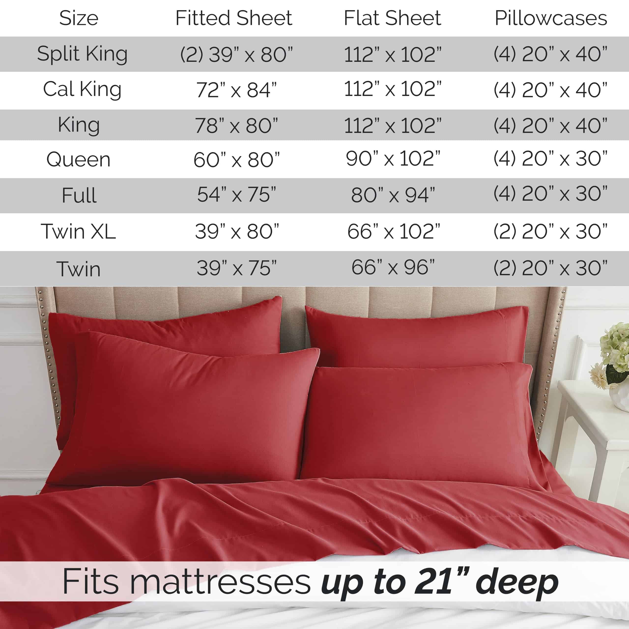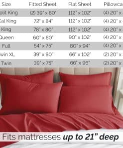 5. JUEGO DE SÁBANAS KING DE PROFUNDO BOLSILLO DE 6 PIEZAS INCLUYE: (1) Sábana Ajustada King 78″ de ancho x 80″ de largo x 21″ de profundidad; (1) Sábana Plana Extra Grande 112″ de ancho x 102″ de largo; (4) Fundas de Almohada 20″ de ancho x 40″ de largo