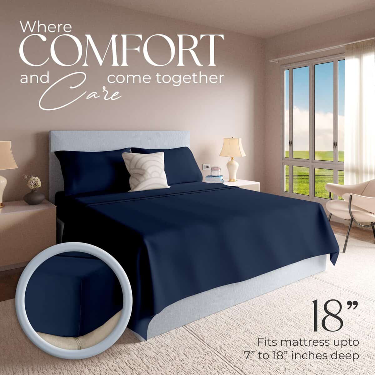 Juego de Sábanas King SUPREME ELEGANCE – 100% Algodón, Azul