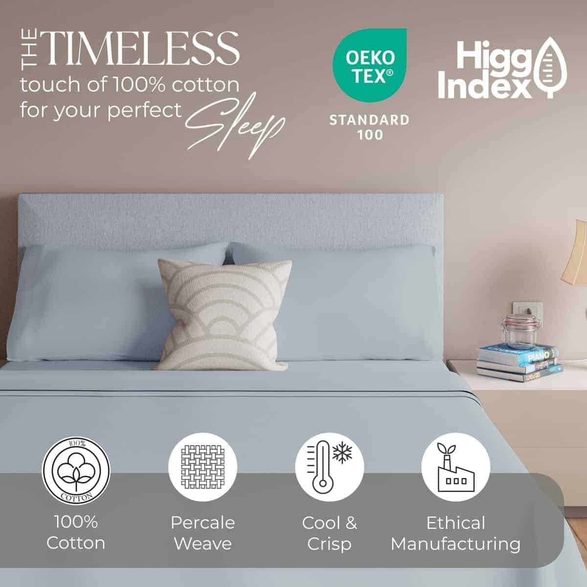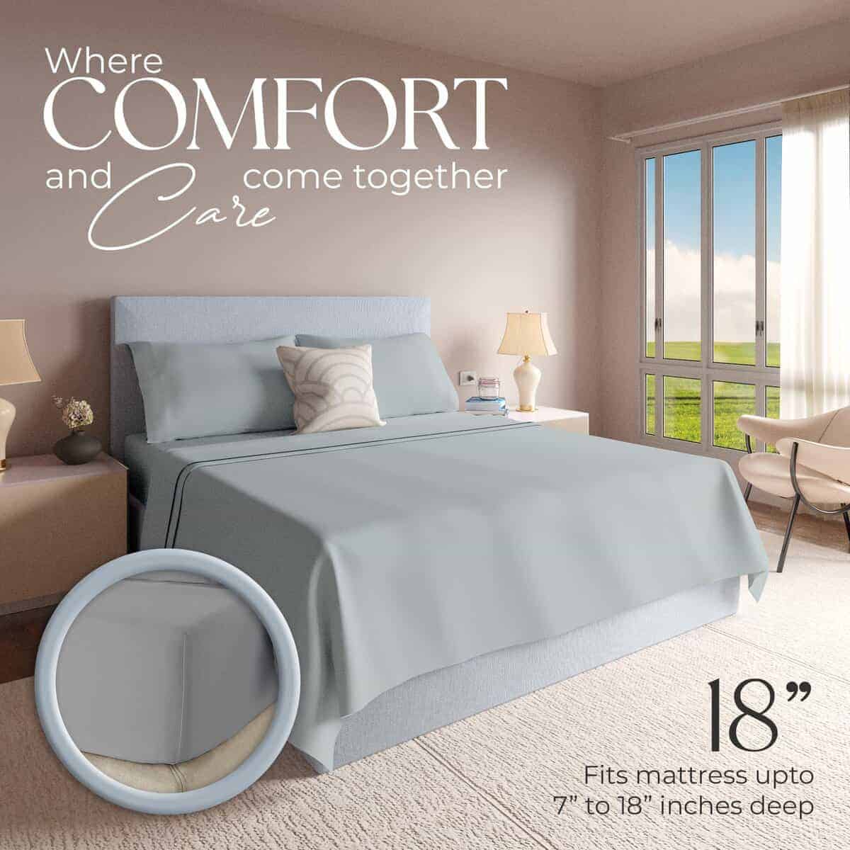 Nuestras sábanas King SUPREME ELEGANCE en color gris suave están confeccionadas con algodón puro, garantizando una calidad excepcional que te proporciona una experiencia de sueño inigualable. El tejido de percal clásico es fresco, crujiente y se siente suave contra la piel, permitiendo que te sumerjas en el máximo confort durante toda la noche. Certificadas por STANDARD 100 by OEKO Tex, nuestras sábanas y fundas de almohada cumplen con los más altos estándares, brindándote la tranquilidad de saber que estás disfrutando de productos de la más alta calidad. La sábana ajustable cuenta con un bolsillo profundo y es totalmente elasticada para adaptarse a colchones de hasta 16 pulgadas de profundidad. Además, incluye una «Etiqueta inteligente para la cabeza/pie» para indicar el lado correcto de la sábana, facilitando su uso. El juego de sábanas King incluye 1 sábana plana de 108 pulgadas de ancho x 102 pulgadas de largo, 1 sábana ajustable de 78 pulgadas de ancho x 80 pulgadas de largo, y 2 fundas de almohada tamaño King de 40 pulgadas de ancho x 20 pulgadas de largo, para adaptarse a tus necesidades. Todas nuestras sábanas y fundas de almohada son elaboradas con esmero en nuestra fábrica de vanguardia en la India, donde cada pieza se somete a una estricta inspección de calidad para garantizar la excelencia. Estamos comprometidos a reemplazar cualquier producto defectuoso sin costos adicionales para ti, y nuestra política de devolución de 30 días se aplica, incluso si has lavado o usado nuestro producto. Compra con confianza y disfruta de la comodidad y calidad que solo nuestras sábanas King SUPREME ELEGANCE pueden ofrecerte.
