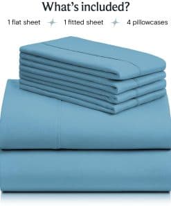 1. ROPA DE CAMA DE LUJO: Incluye 1 sábana ajustable, 1 sábana plana y 4 fundas de almohada. Nuestro juego de sábanas king de 6 piezas LuxClub están confeccionadas con microfibra, ofrecen una experiencia de ropa de cama más lujosa y cómoda que incluso las mejores sábanas y fundas de almohada de algodón egipcio. Con microfibra de poliéster de doble cepillado, estas sábanas king superan al algodón 100% en suavidad y transpirabilidad. 2. COMODIDAD INIGUALABLE: Saluda al juego de sábanas king certificado Oeko-Tex Standard 100 que rivaliza con las sábanas de lujo de hoteles y con alto recuento de hilos. Nuestros juegos de ropa de cama ofrecen las mejores sábanas frescas con una transpirabilidad superior. Además, las sábanas de bolsillos profundos de 18 pulgadas no tienen arrugas y son suaves y sedosas, brindándote una comodidad incomparable. 3. CALIDAD EXCEPCIONAL: Nuestras sábanas king ajustables están hechas con una mezcla de microfibra y elástico en todo su contorno, lo que les proporciona una resistencia y elasticidad superiores. Los bolsillos profundos son perfectos para espumas viscoelásticas o cubrecolchones, mientras que las sábanas son más suaves que las sábanas de jersey y son resistentes a la decoloración, antipilling y controladas de temperatura. 4. REGALO PERFECTO: El juego de sábanas king de bolsillo profundo de 6 piezas LuxClub es el regalo perfecto para cualquier persona. Son ideales para personas de todas las edades, incluidos padres, cónyuges e hijos, y son aptos para cualquier época del año. ¡También es un regalo adorable que puede decorar tu habitación! 5. SATISFACCIÓN DE POR VIDA: Hechas de microfibra de calidad, el juego de sábanas LuxClub te brinda la sensación más suave y suave a un precio razonable. También ofrecemos más de 39 colores vibrantes para que elijas decorar tu habitación. Nuestra garantía total de confianza te proporcionará tranquilidad. Agrégalos a tu carrito y disfruta de la comodidad de las sábanas queen de LuxClub.