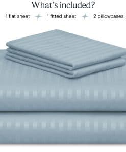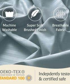 LuxClub ofrece un juego de sábanas de lujo de 4 piezas para cama tamaño completo que garantiza una experiencia de sueño incomparable. Las sábanas a rayas ofrecen una suavidad y transpirabilidad superiores en comparación con las sábanas de algodón convencionales. Con un diseño elegante y moderno, estas sábanas agregan un toque de sofisticación a cualquier habitación. Los bolsillos profundos de 18 pulgadas aseguran un ajuste perfecto en colchones gruesos, incluidos los colchones con toppers de espuma viscoelástica. Además, su resistencia a la decoloración, anti-pilling y tecnología de temperatura las convierten en la opción perfecta para aquellos que buscan la combinación ideal de confort y durabilidad. Este juego de sábanas LuxClub no solo es una excelente adición para su hogar, sino que también es un regalo ideal para personas de todas las edades. Con total confianza y satisfacción de por vida, puedes estar seguro de que disfrutarás de la comodidad de estas sábanas de calidad excepcional.