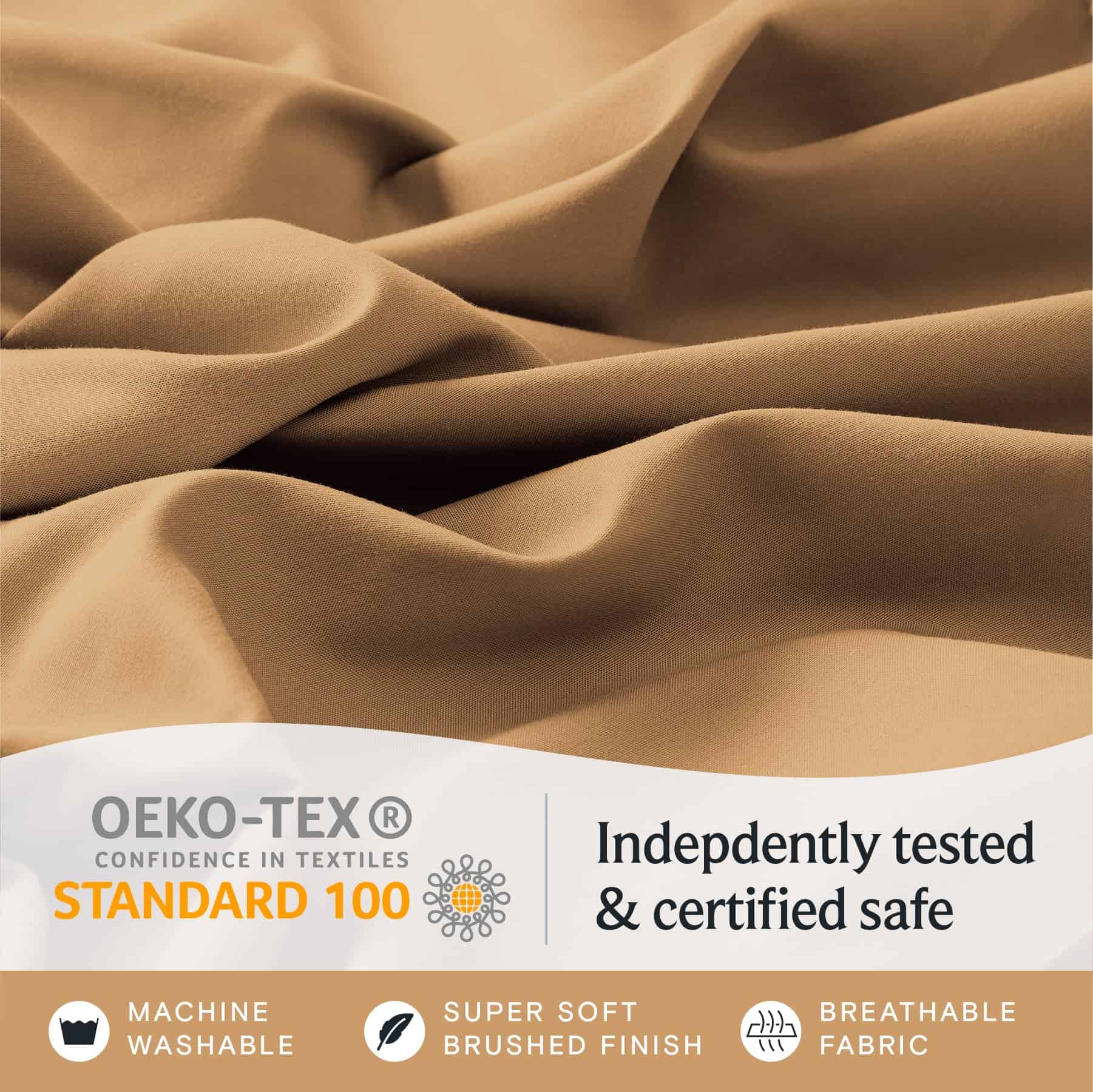2. CONFORT INIGUALABLE: ¡Saluda al juego de sábanas completo de tamaño Oeko-Tex Standard 100 certificado que rivaliza con las sábanas de hotel y de alta cuenta de hilos de lujo! Nuestros juegos de sábanas ofrecen las mejores sábanas frescas con una transpirabilidad superior. Además, las sábanas con bolsillos profundos de 18 pulgadas son sin arrugas y suaves como la seda, brindándote un confort incomparable.