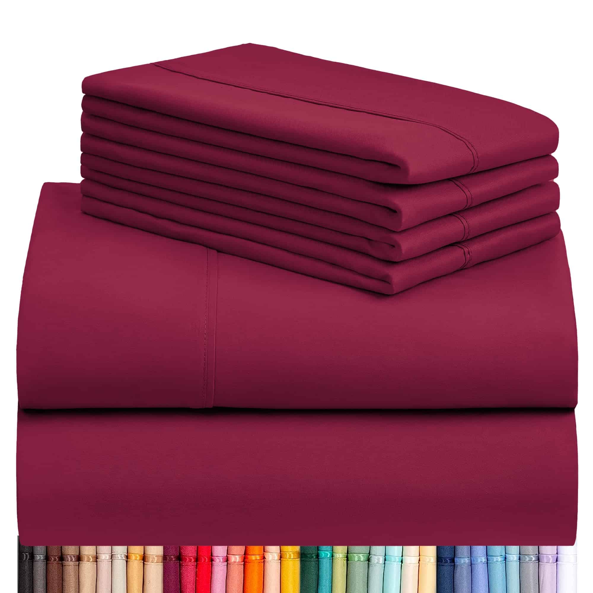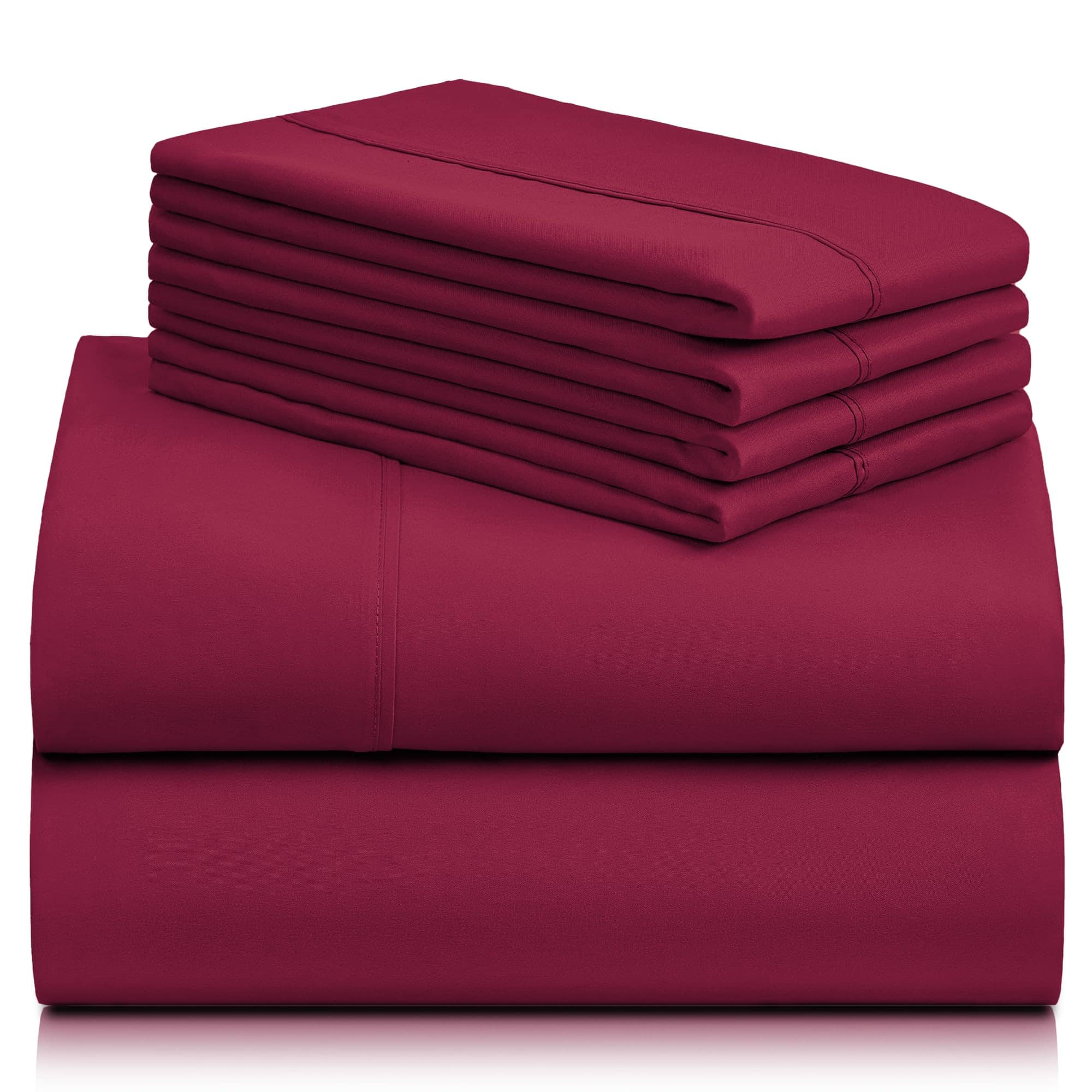 Juego de sábanas LuxClub de 6 piezas -Burdeos