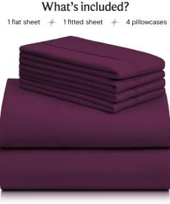 Juego de sábanas LuxClub de 6 piezas para -Eggplant