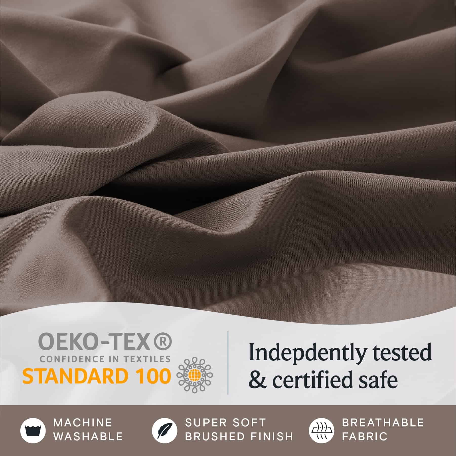 2. COMODIDAD INIGUALABLE: Conoce el juego de sábanas king certificado Oeko-Tex Standard 100 que rivaliza con las sábanas de lujo de hoteles y de alto conteo de hilos. Nuestros juegos de ropa de cama ofrecen las mejores sábanas frescas con una transpirabilidad superior. Además, las sábanas de bolsillos profundos de 18 pulgadas no tienen arrugas y son suaves como la seda, brindándote una comodidad sin igual.