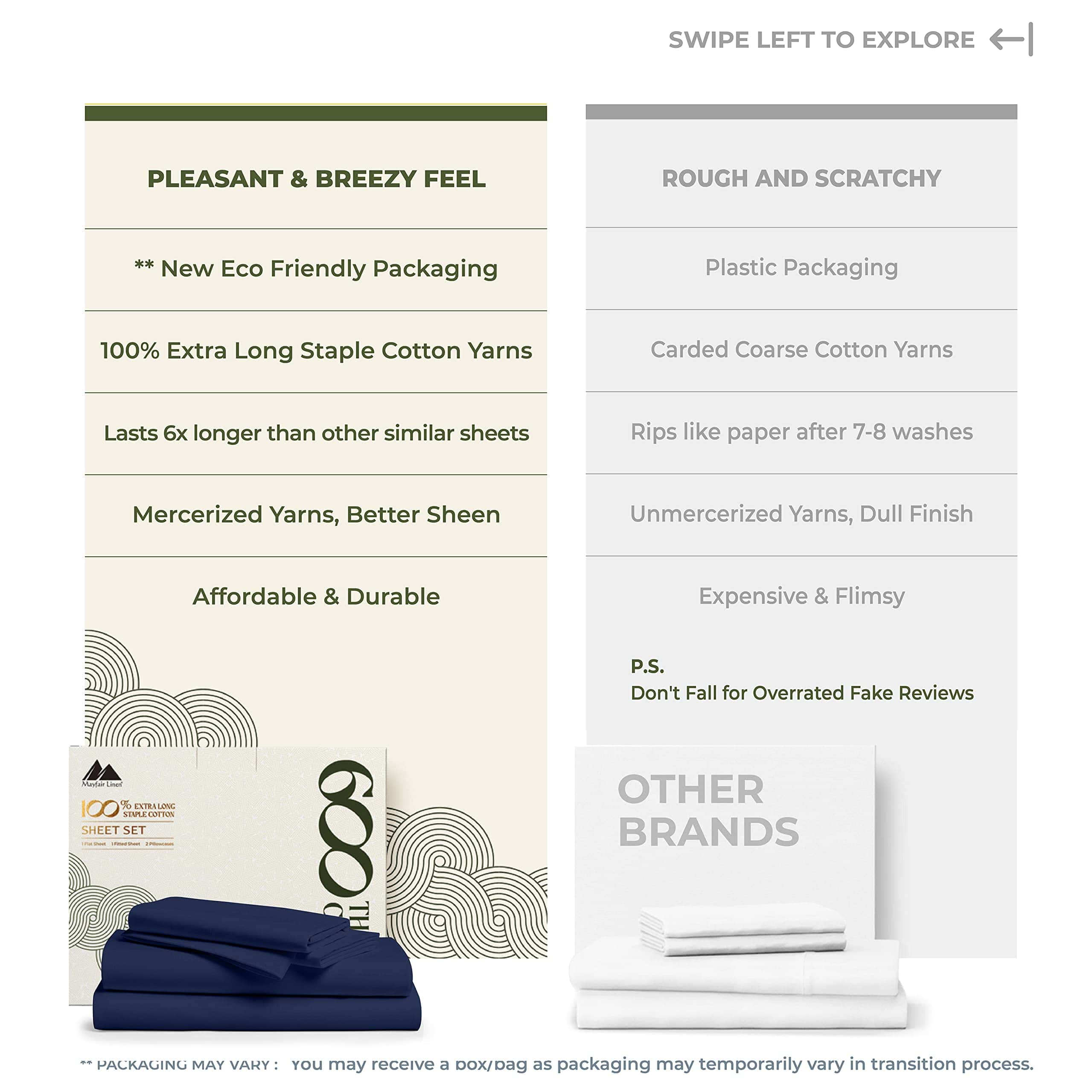 1. Durabilidad y suavidad excepcionales: Nuestras sábanas Mayfair Linen de 600 hilos establecen nuevos estándares en comodidad. Al utilizar algodón de fibra extra larga, que es conocido por sus fibras largas, nuestras sábanas ofrecen una durabilidad y suavidad incomparables. Los 600 hilos densamente empacados por pulgada cuadrada garantizan un equilibrio entre suavidad y resistencia. Mercerizadas para un brillo mejorado y colores vivos, estas sábanas no solo son suaves, también son resistentes y están diseñadas para sentirse lujosas en cada temporada.
