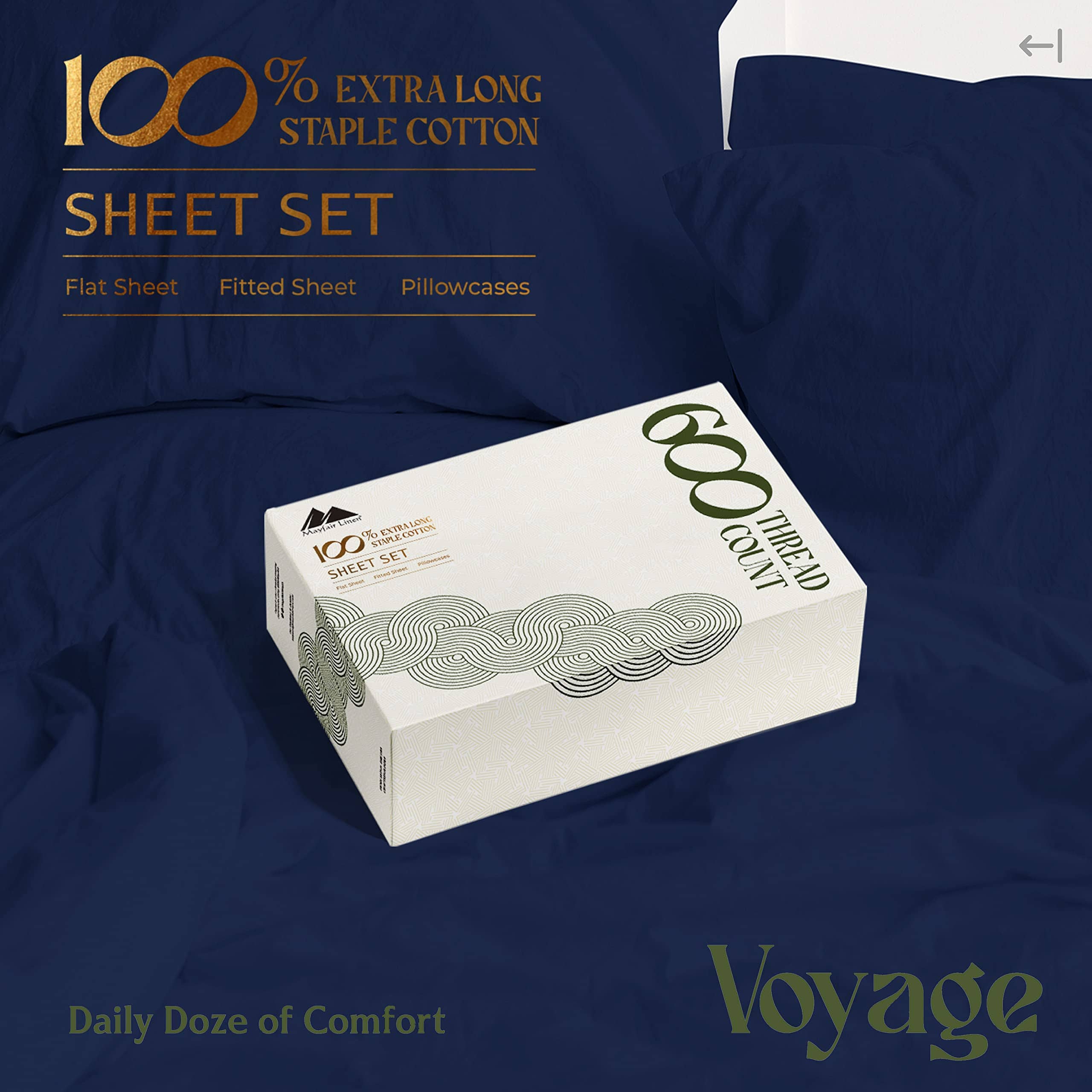 Juego de sábanas Mayfair Linen 100% algodón -Azul marino