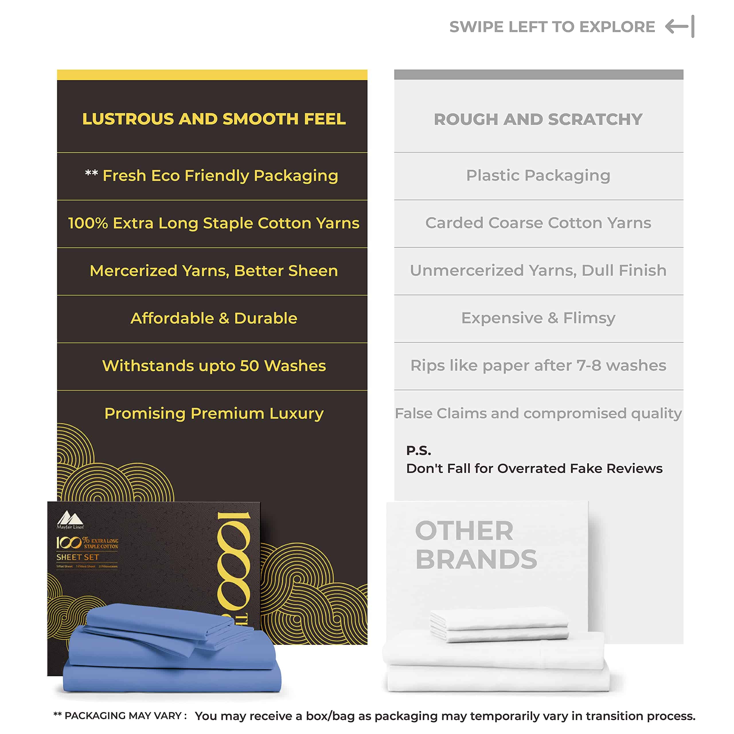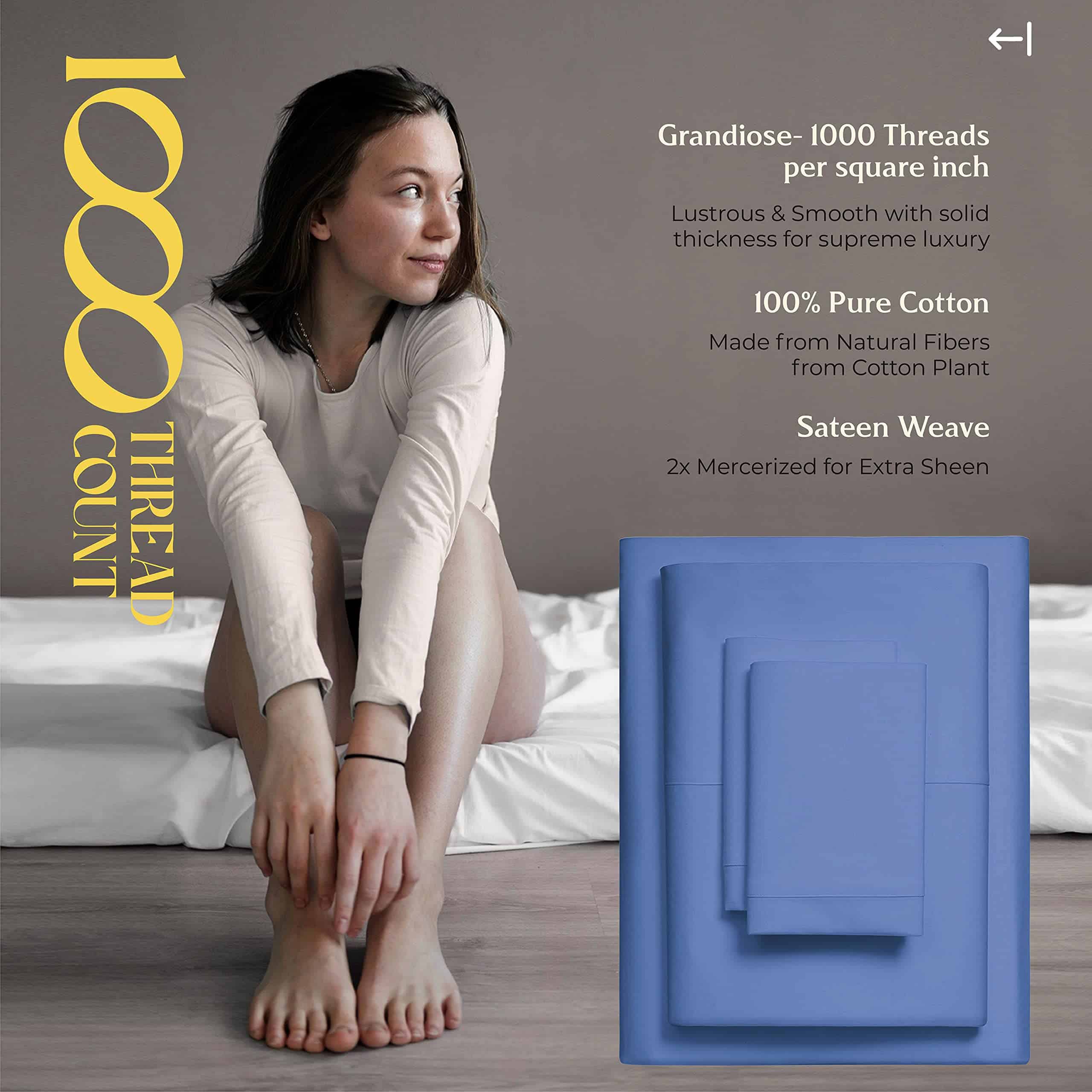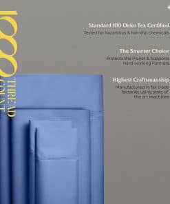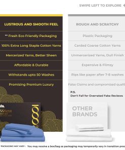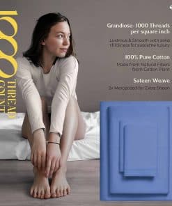 ¿QUÉ HAY EN LA BOLSA? 1 Sábana plana: 102″ W x 108″ L | 1 Sábana inferior: 39″ W x 80″ L + 16″ bolsillo profundo | 1 Fundas de almohada tamaño Queen: 21″ W x 32″ L. LO QUE HACE QUE NUESTRAS SÁBANAS SEAN LAS MÁS SUAVES Y LUJOSAS EN EL MERCADO HOY: Cuanto más larga sea la fibra, más suave será la tela. Usamos fibras de algodón de gran longitud para hacer los juegos de sábanas más suaves y acogedores. Hay 1000 hilos tejidos en cada pulgada cuadrada de tela para mejorar la resistencia, la resistencia al pilling y al encogimiento, y la suavidad de la tela. Las sábanas luego se mercerizan para un toque más suave, brillo aumentado y para hacer que los colores parezcan más brillantes que las sábanas de algodón regular.