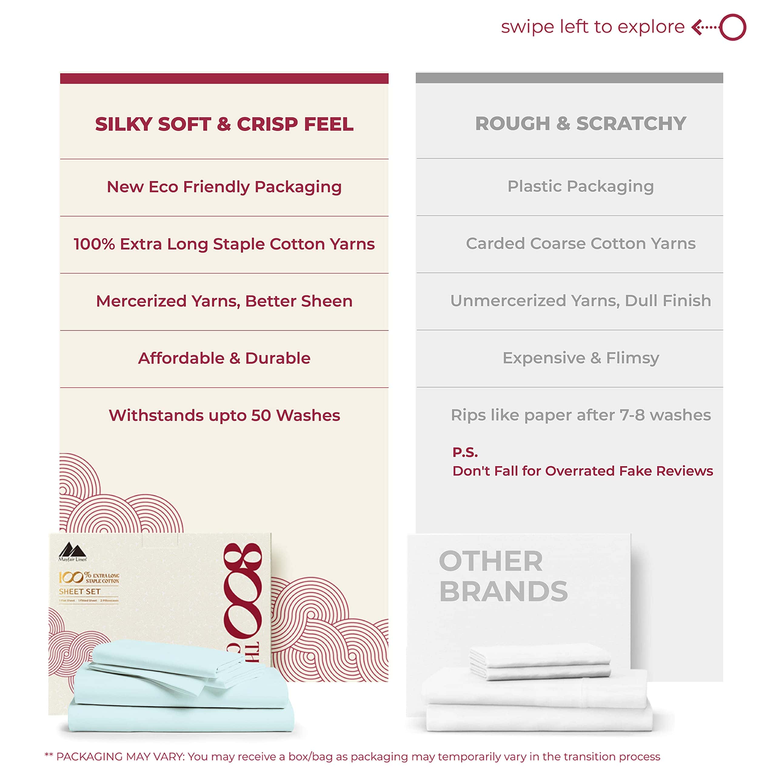 No todas los juegos de sábanas de algodón son iguales, algunos son un 30% más gruesos que las sábanas promedio, fabricadas con algodón egipcio de fibra larga para una suavidad y durabilidad mejoradas, y luego mercerizados 2 veces para un brillo brillante y un tacto sedoso. Sí, estamos hablando de nuestros juegos de sábanas de algodón egipcio de 800 hilos tamaño Split King. Estas sábanas de colección de hotel premium son pesadas pero gruesas, acogedoras pero frescas, transpirables y frescas, para el mejor sueño. El ajuste perfecto para colchones de tamaño Split King con bolsillos profundos para adaptarse a colchones ajustables de hasta 16 pulgadas de grosor, y elástico alrededor para un ajuste ajustado. Las etiquetas inteligentes indican los lados de longitud y anchura para hacer la cama, y los cierres estándar mantienen las almohadas dentro de la funda. El juego de 5 piezas de sábanas de algodón para camas tamaño Split King incluye 1 sábana encimera (108″ W x 106″ L), 2 sábanas bajeras/ajustables (39″ W x 80″ L + bolsillo profundo de 16″), y 2 fundas de almohada (21″ W x 41″ L). Sábanas de algodón egipcio 100% puro: obtenemos algodón puro que crece de forma natural sin sustancias dañinas. El algodón natural te mantiene fresco y ligero. Además, nuestra certificación Standard 100 de OEKO-TEX garantiza que nuestras sábanas de algodón están libres de sustancias nocivas. Mantenimiento tan fácil como 1-2-3: Fabricadas con tintes de la más alta calidad, nuestras sábanas de cama de alta calidad son fácilmente lavables a máquina y resistentes a la decoloración, el apelotonamiento y la contracción. Con cada lavado, estas sábanas de algodón egipcio se vuelven aún más suaves y acogedoras. Para un acabado nítido y suave, recomendamos un ciclo de lavado suave semanal y secado a baja temperatura, seguido de un rápido planchado tibio mientras está ligeramente húmedo para minimizar elegantemente las arrugas naturales y mejorar la sensación de lujo. Haz que las ocasiones sean especiales: haz que tu Día de San Valentín, Día de la Madre, Día del Padre, bodas, vacaciones, festividades de otoño, Halloween y Navidad sean especiales con estas sábanas de enfriamiento. Forme parte de un regalo o combínelo con un edredón de lujo, una funda nórdica y otros decorados para el dormitorio para la mejor noche de sueño.