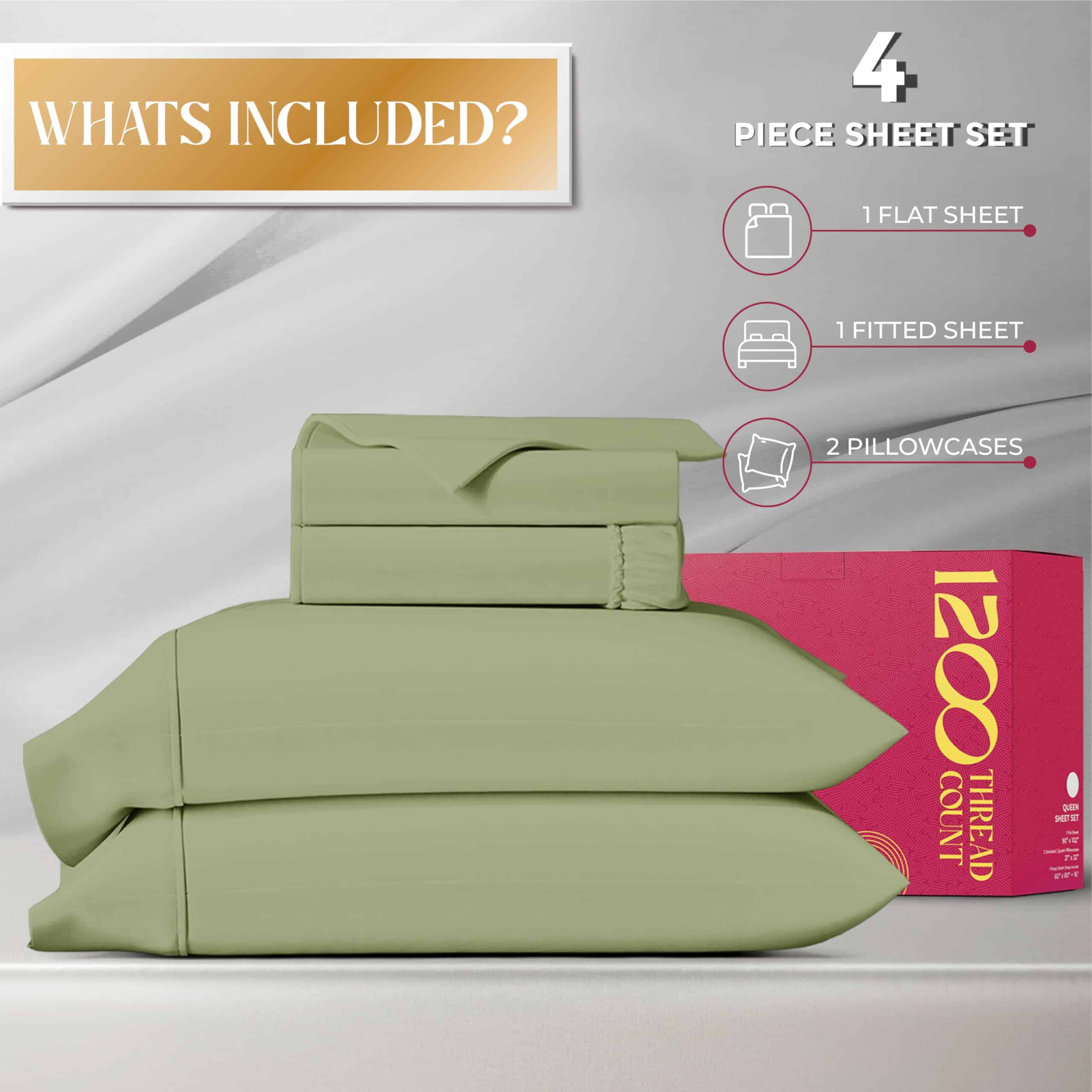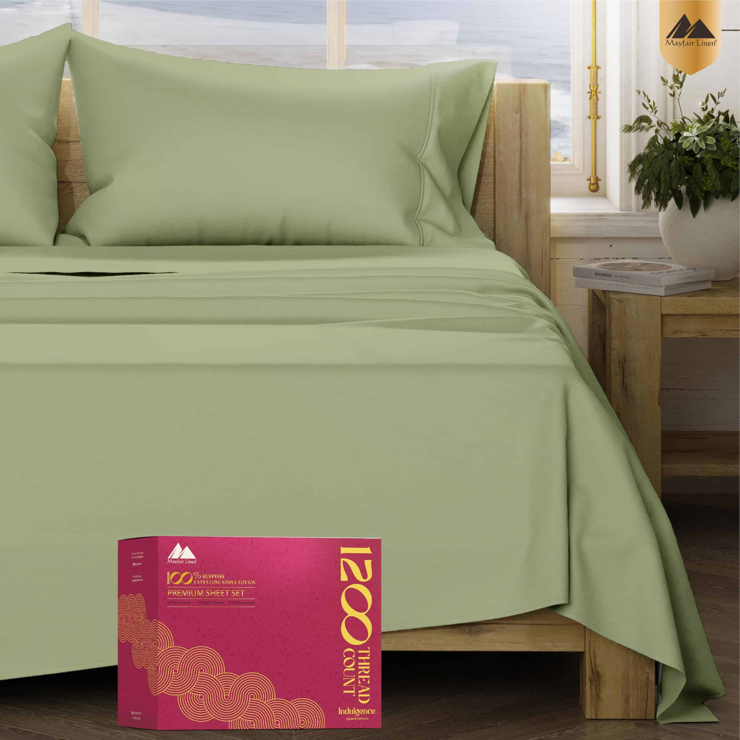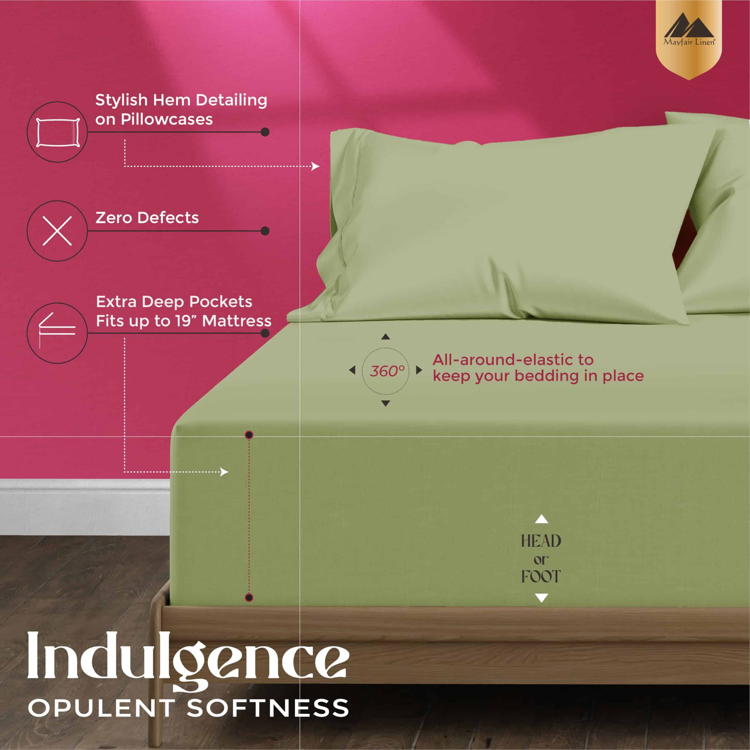 Juego de sábanas Mayfair Linen 100% algodón -Verde Salvia