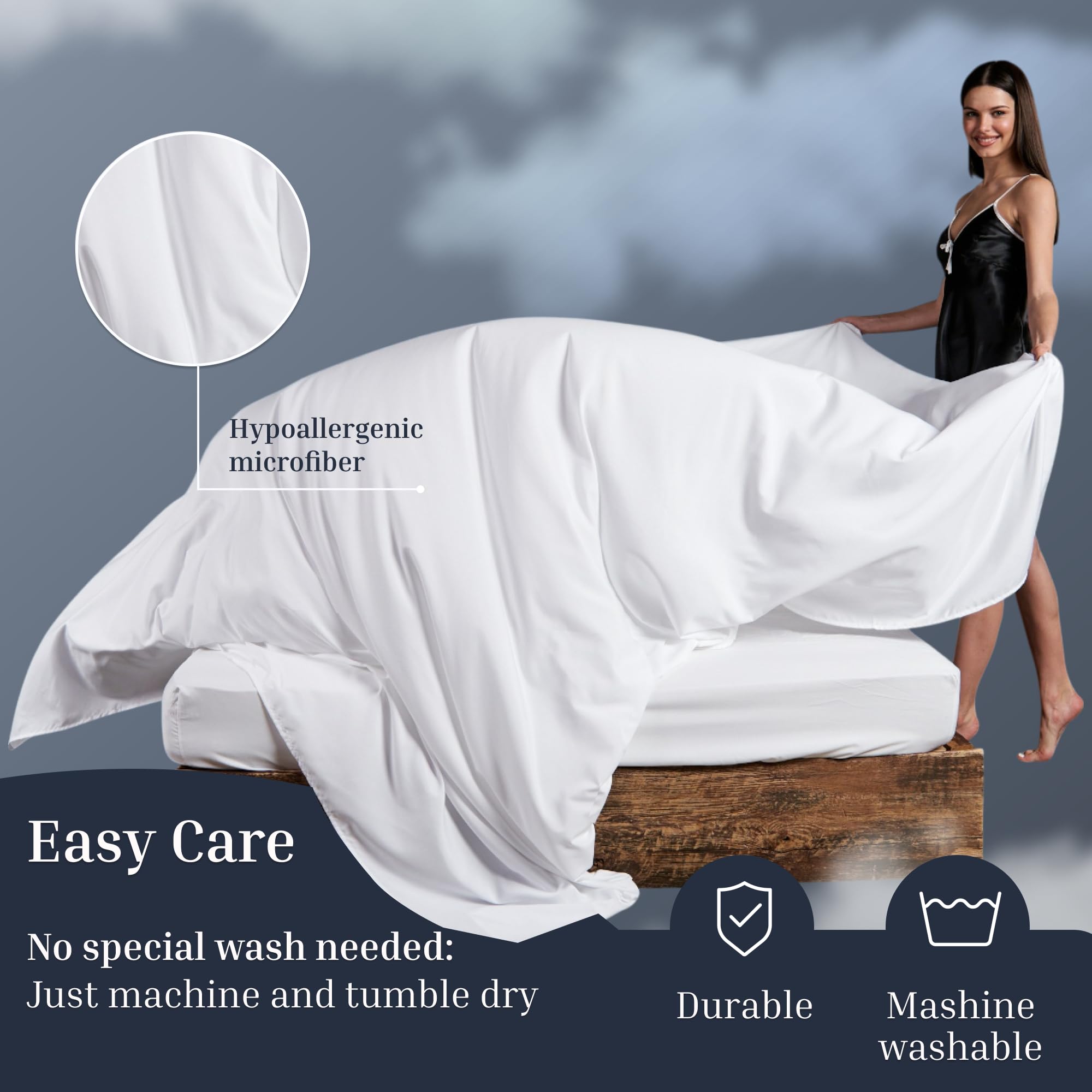 Disponible en una amplia gama de colores para combinar con cualquier decoración de dormitorio moderna o clásica, este juego de ropa de cama de fácil cuidado es lavable a máquina, de secado rápido y requiere un planchado mínimo. ¡Mejore su sueño con este juego de sábanas de alta calidad y asequible hoy mismo!