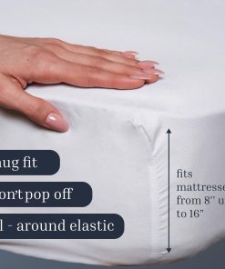 La sábana ajustable de bolsillo profundo está diseñada para adaptarse a colchones de hasta 16 pulgadas de grosor, con elástico 360 alrededor para un ajuste seguro y ceñido. ¡Diga adiós a las esquinas sueltas y las sábanas que se desplazan! El tejido resistente a las arrugas, a la decoloración y a las manchas mantiene su color vibrante y su textura suave lavado tras lavado, asegurando una calidad duradera.