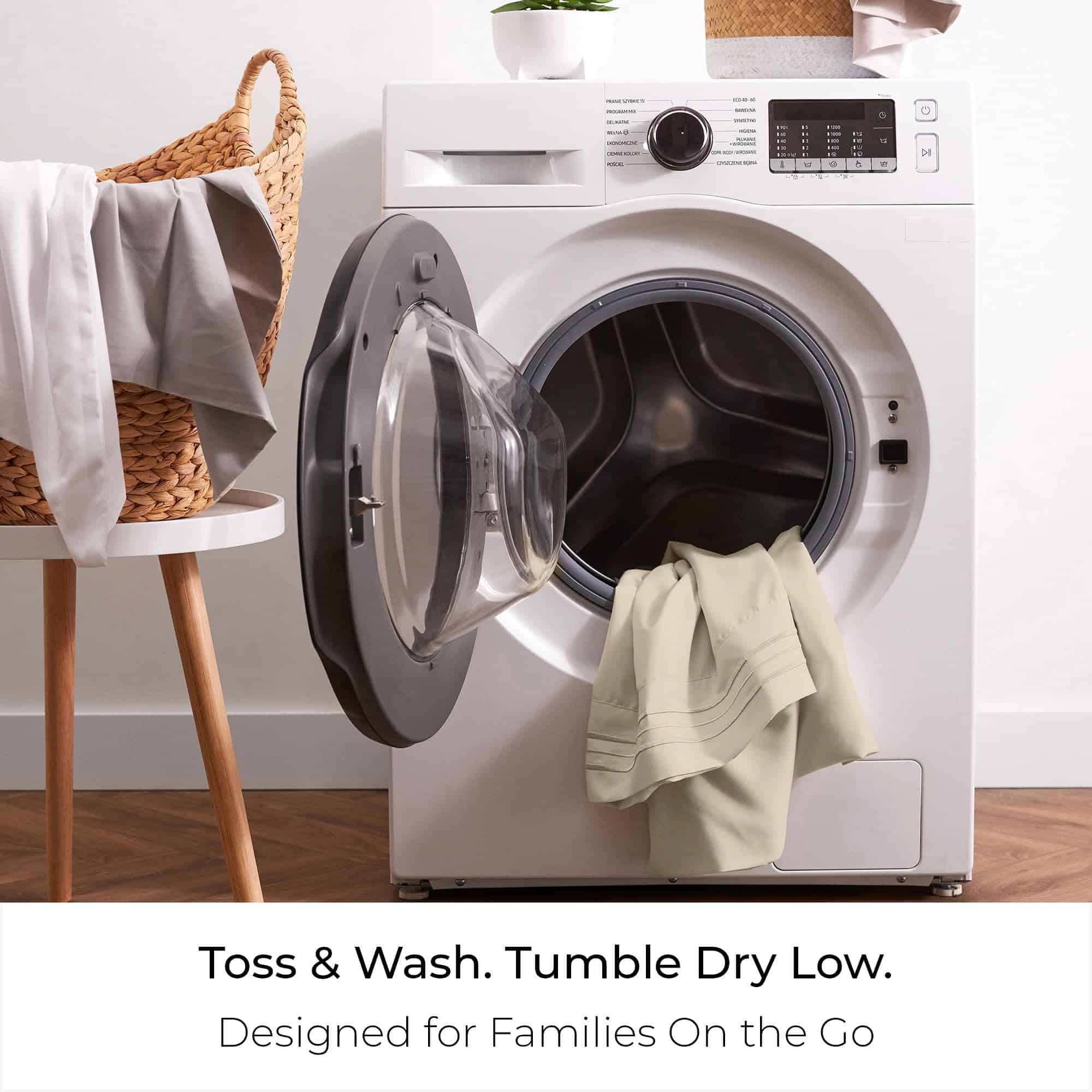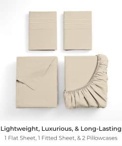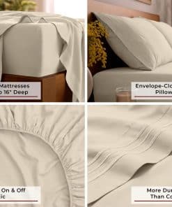 Con un cuidado sin esfuerzo y durabilidad duradera, estas sábanas son fáciles de mantener. Resisten manchas, encogimiento, decoloración, arrugas y pilling, por lo que son ideales para hogares ocupados con niños, mascotas y la vida cotidiana. Los bolsillos profundos se ajustan a colchones de hasta 16″ de profundidad, haciéndolas ideales para toppers de espuma viscoelástica, colchones de aire y más. La banda elástica cosida asegura un ajuste ajustado y seguro, mientras que la certificación OEKO-TEX(R) STANDARD 100 garantiza que estas sábanas han sido probadas para más de 1,000 sustancias nocivas para tu tranquilidad.