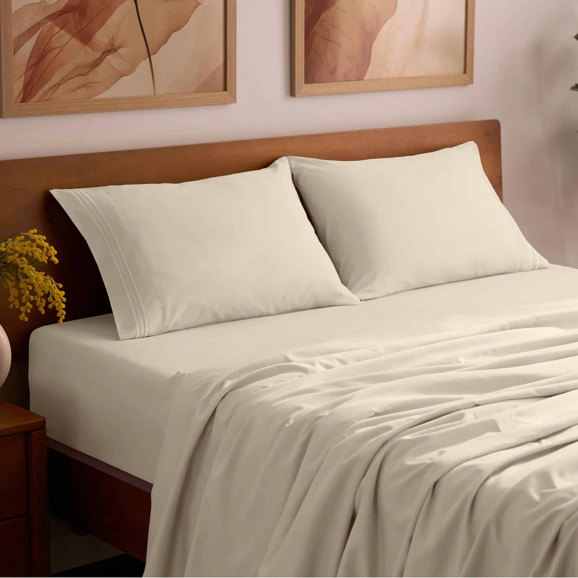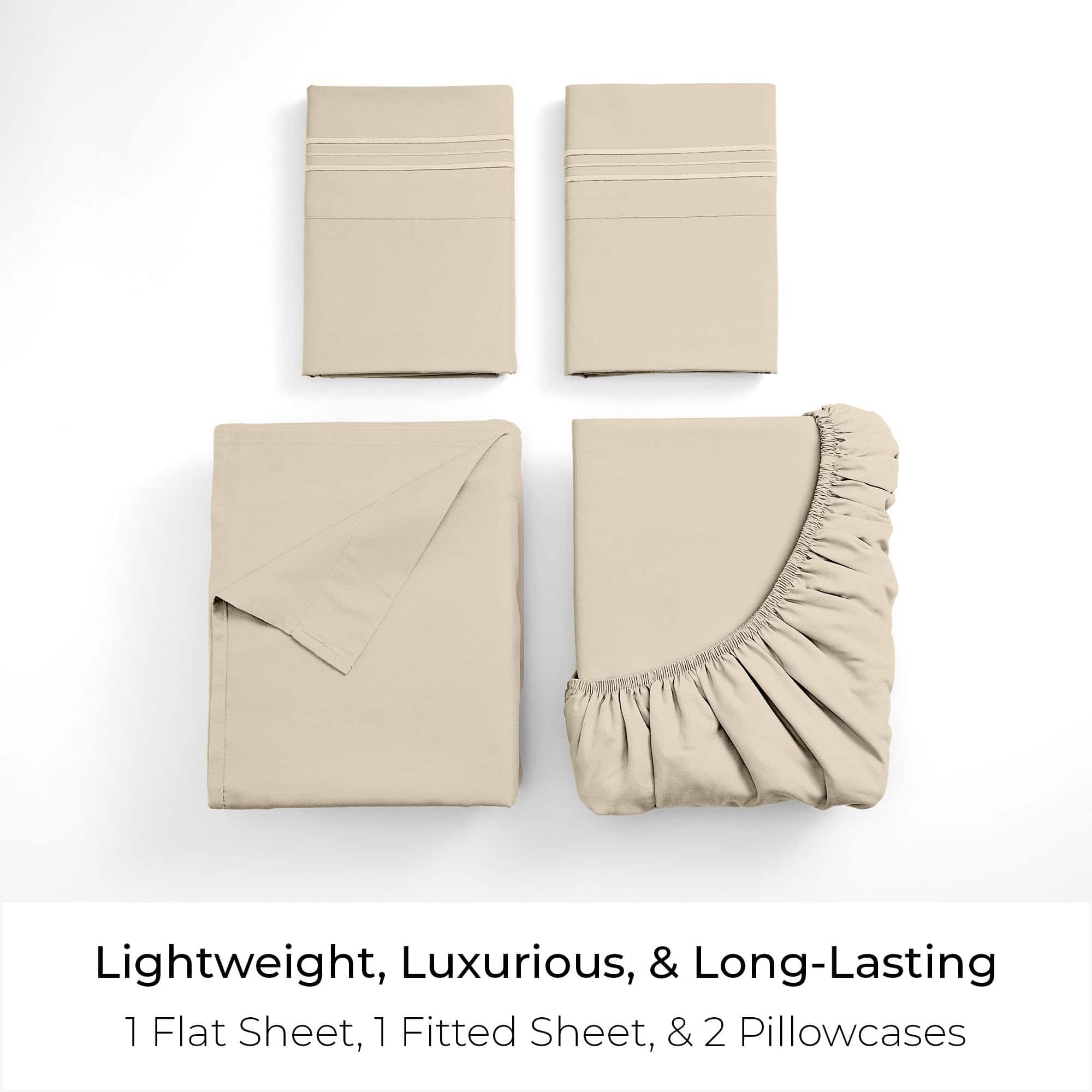 El juego completo de 4 piezas para cama Full incluye 1 sábana ajustable, 1 sábana plana y 2 fundas de almohada, todos elaborados en microfibra de doble cepillado para una sensación ultra suave. Además, regulan la temperatura para mantenerte acogedor en invierno y fresco en verano, lo que hace que estas sábanas sean perfectas para cualquier clima.