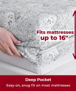 4. Ajuste perfecto y certificado seguro – Los bolsillos profundos se ajustan a colchones de hasta 16″ de profundidad, haciéndolos ideales para toppers de espuma viscoelástica, colchones de aire y más. Una banda elástica cosida garantiza un ajuste ceñido y seguro. Certificado OEKO-TEX(R) STANDARD 100 (22.HUS.40981, Hohenstein), probado para más de 1,000 sustancias nocivas para tu tranquilidad.