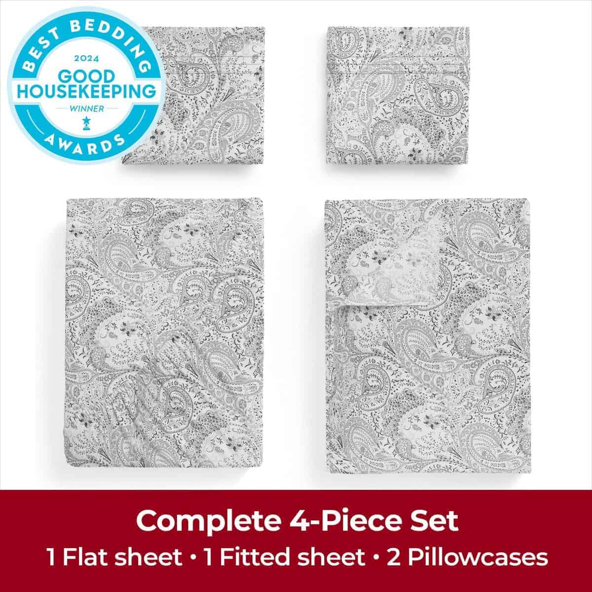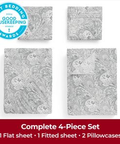 2. Juego completo de 4 piezas para cama Full – Incluye 1 sábana ajustable (54″x75″x16″), 1 sábana plana (81″x96″), y 2 fundas de almohada (20″x30″) – todas elaboradas con microfibra de doble cepillado para una sensación ultra suave. Regulación de temperatura para mantenerte acogedor en invierno y fresco en verano.
