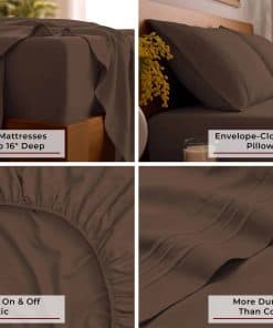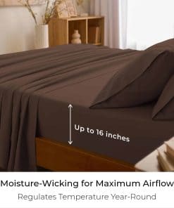 Lujo Ligero para una Comodidad Todo el Año – Diseñadas para ser aireadas y ultra ligeras, nuestras sábanas ofrecen comodidad sin esfuerzo en todas las estaciones. Su construcción delgada y transpirable mejora el flujo de aire, absorbe la humedad y seca rápidamente. A pesar de su tacto ligero, estas sábanas son excepcionalmente fuertes y más duraderas que el algodón, resistiendo manchas, rasgaduras y desgaste por lavados frecuentes. Perfectas para hogares ocupados con niños o mascotas.