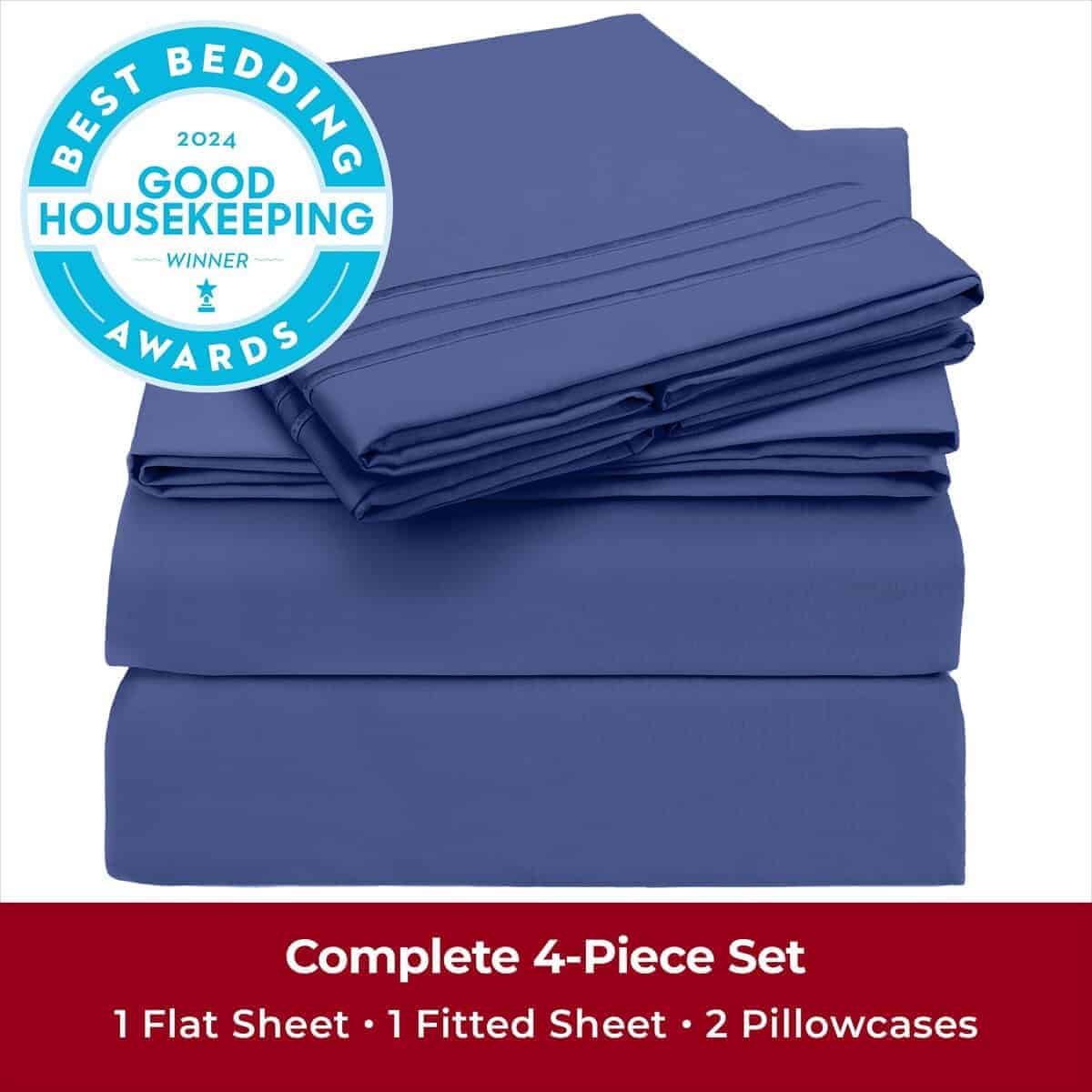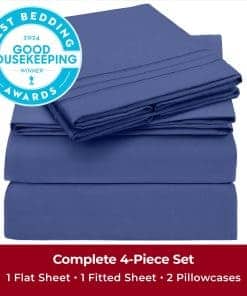 Juego de sábanas Mellanni King – 4 PC -Azul Nova