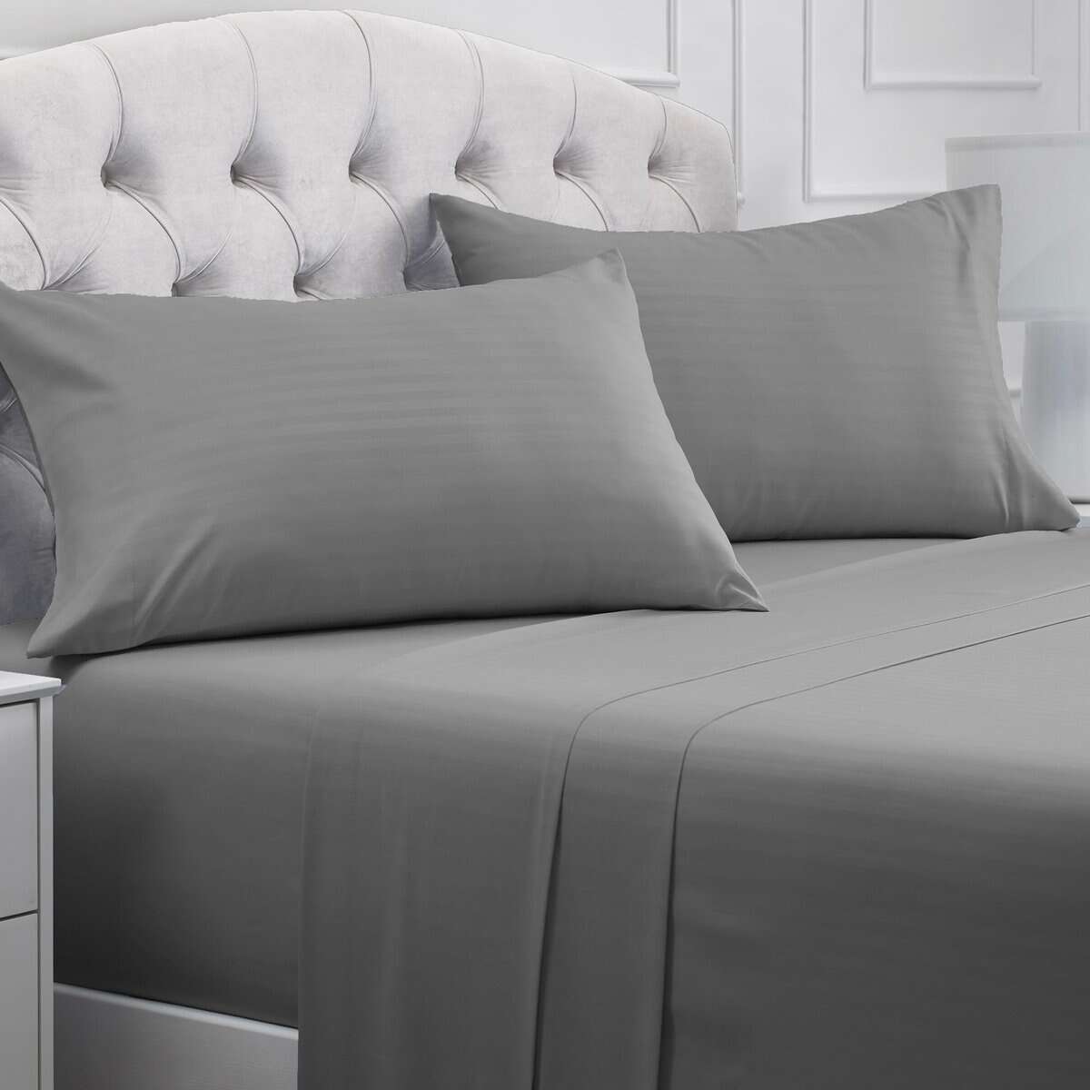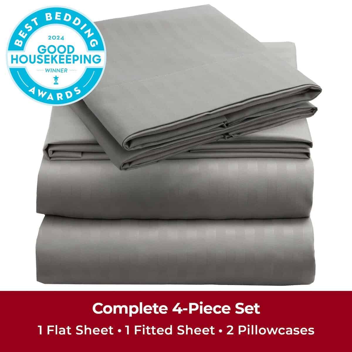 Juego de sábanas Mellanni Queen – 4 PC Iconic -Gris/Plata a