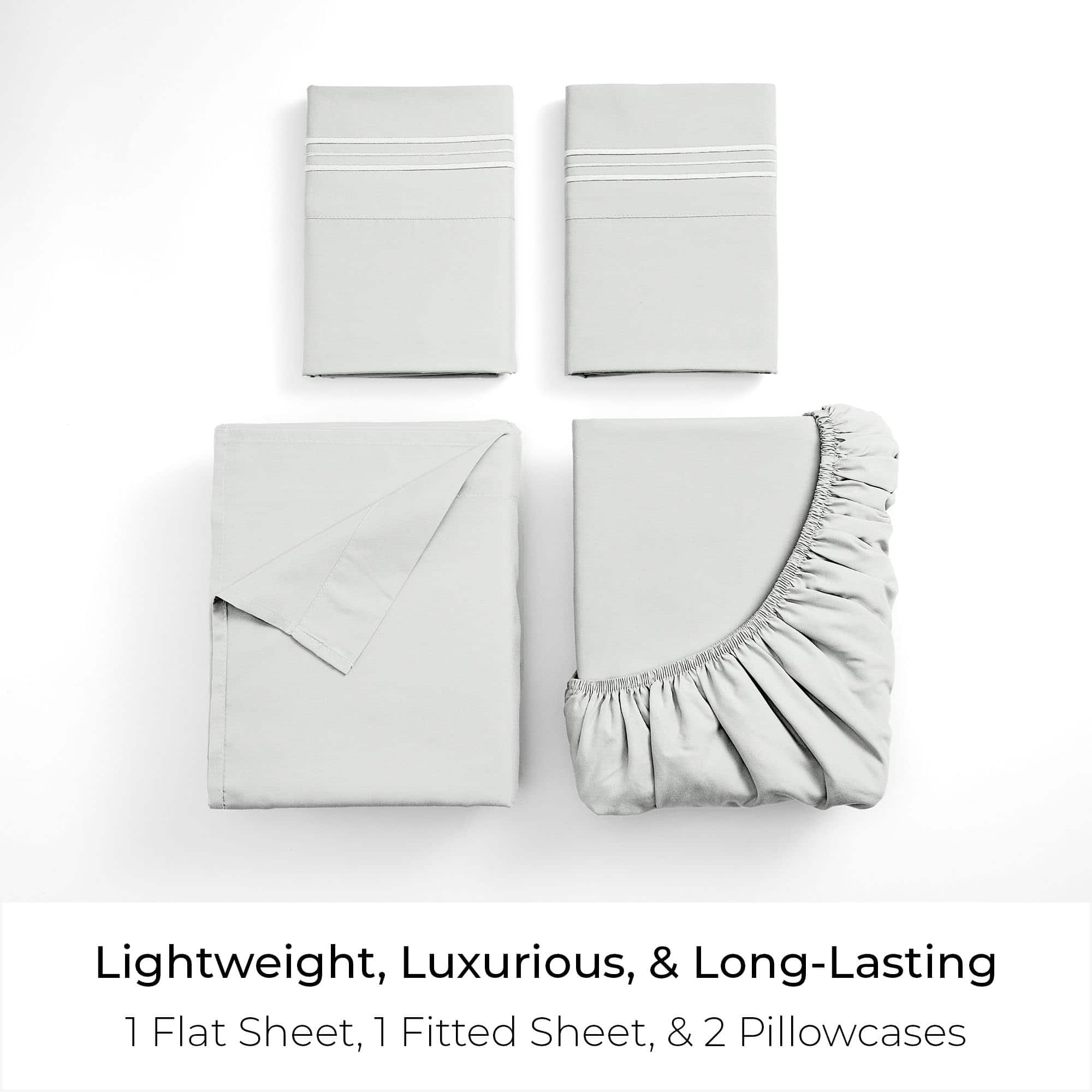 Juego completo de ropa de cama Queen de 4 piezas – Incluye 1 sábana ajustable (80″x60″x16″), 1 sábana plana (102″x90″), y 2 fundas de almohada (20″x30″) – todas fabricadas en microfibra de doble cepillado para una sensación ultra suave. Regulación de temperatura para mantenerte acogedor en invierno y fresco en verano.