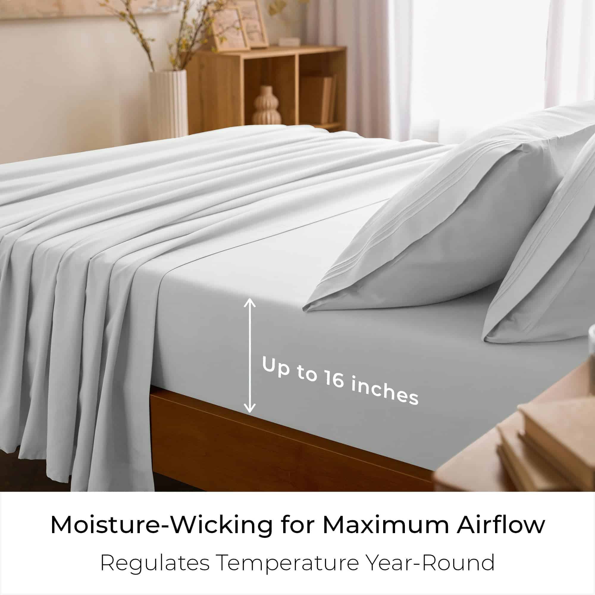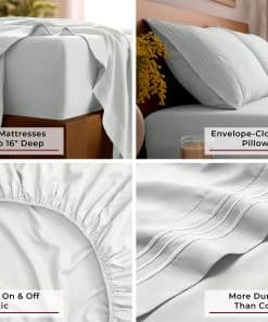 Lujo ligero para confort durante todo el año – Diseñadas para ser aireadas y ultra ligeras, nuestras sábanas ofrecen comodidad sin esfuerzo en cada temporada. Su construcción delgada y transpirable mejora el flujo de aire, absorbe la humedad y se seca rápidamente. A pesar de su sensación ligera, estas sábanas son excepcionalmente fuertes y más duraderas que el algodón, resistiendo manchas, rasgaduras y desgaste por lavados frecuentes. Perfectas para hogares ocupados con niños o mascotas.