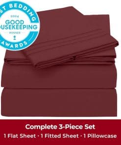 Juego de sábanas Mellanni Twin – Colección -Borgoña