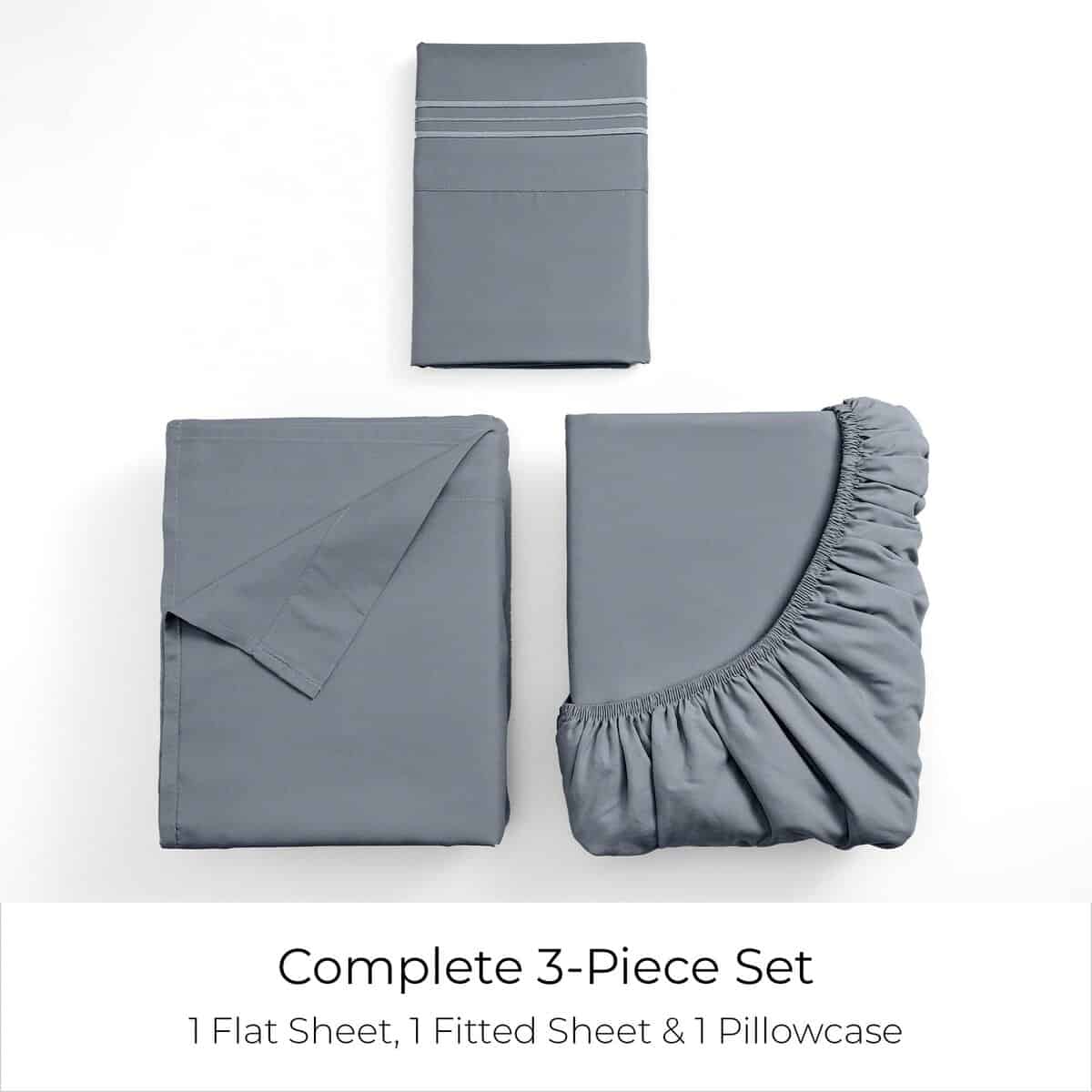 El juego completo de ropa de cama Twin de 3 piezas incluye una sábana ajustable de 39″x75″x16″, una sábana plana de 66″x96″ y una funda de almohada de 20″x30″, todo fabricado en microfibra de doble cepillado para una sensación ultra suave. La regulación de temperatura de estas sábanas te mantendrá acogedor en invierno y fresco en verano. Además, su cuidado es sin esfuerzo: se pueden lavar a máquina en frío y secar en secadora a baja temperatura, resistiendo manchas, encogimiento, decoloración, arrugas y formación de bolitas.