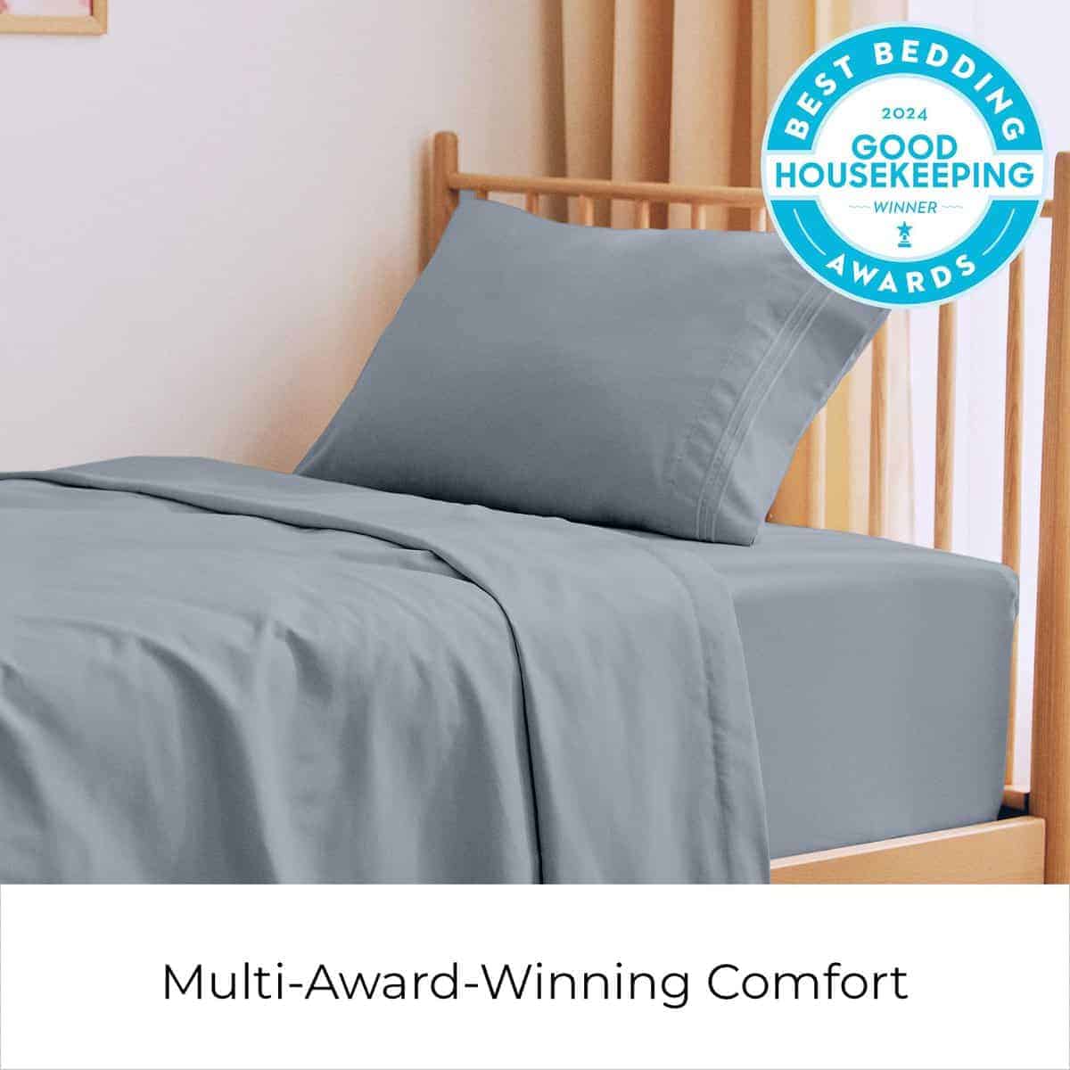 Con bolsillos profundos que se ajustan a colchones de hasta 16″ de profundidad, estas sábanas son ideales para toppers de espuma viscoelástica, colchones de aire y más. Una banda elástica cosida asegura un ajuste apretado y seguro. Además, estas sábanas están certificadas por OEKO-TEX(R) STANDARD 100 (22.HUS.40981, Hohenstein), probadas para más de 1,000 sustancias nocivas para tu tranquilidad.