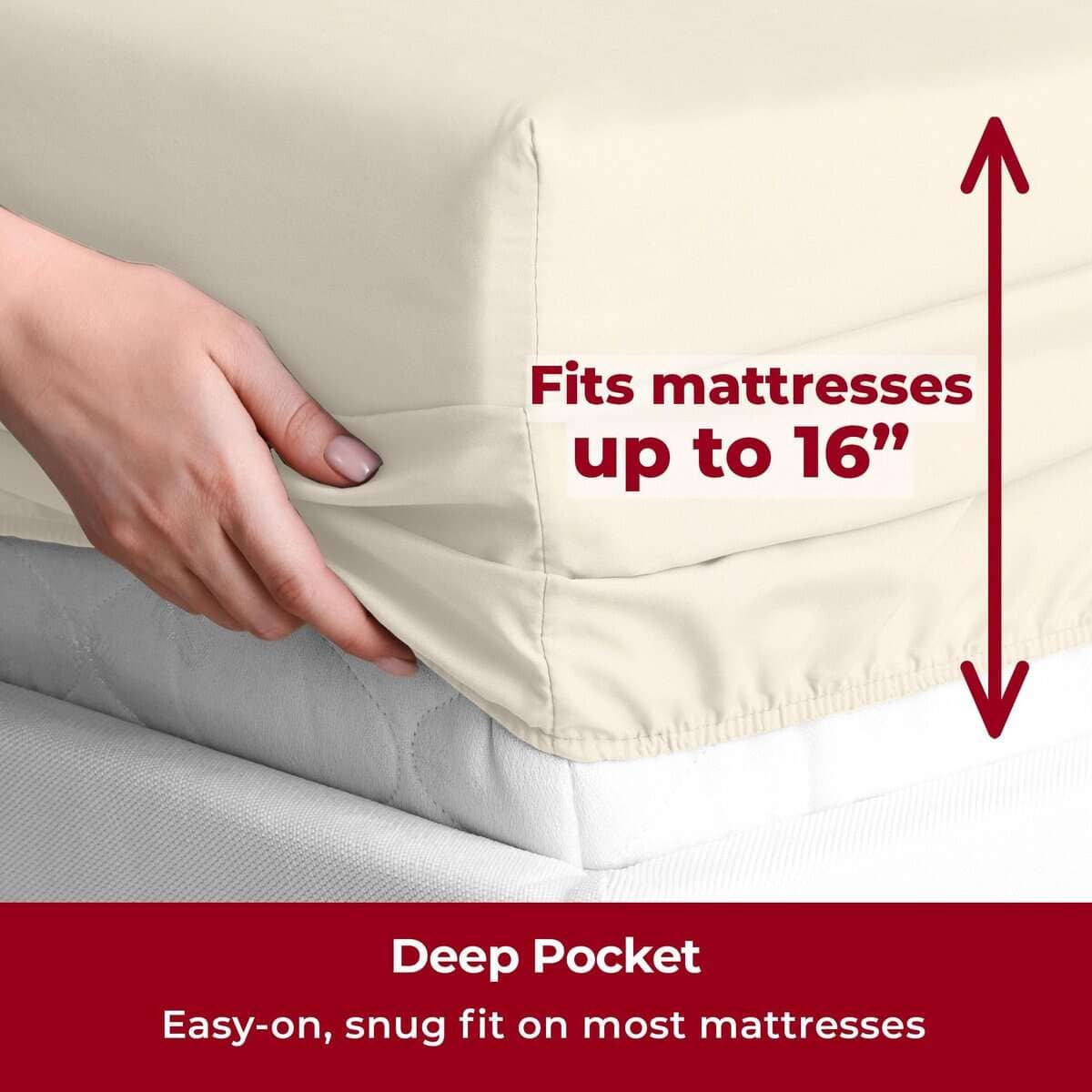 4. Ajuste perfecto y certificado seguro: Los bolsillos profundos se ajustan a colchones de hasta 16″ de profundidad, lo que las hace ideales para toppers de espuma viscoelástica, colchones de aire y más. Una banda elástica cosida garantiza un ajuste cómodo y seguro. Certificado OEKO-TEX(R) STANDARD 100 (22.HUS.40981, Hohenstein), probado para más de 1,000 sustancias nocivas para tu tranquilidad.
