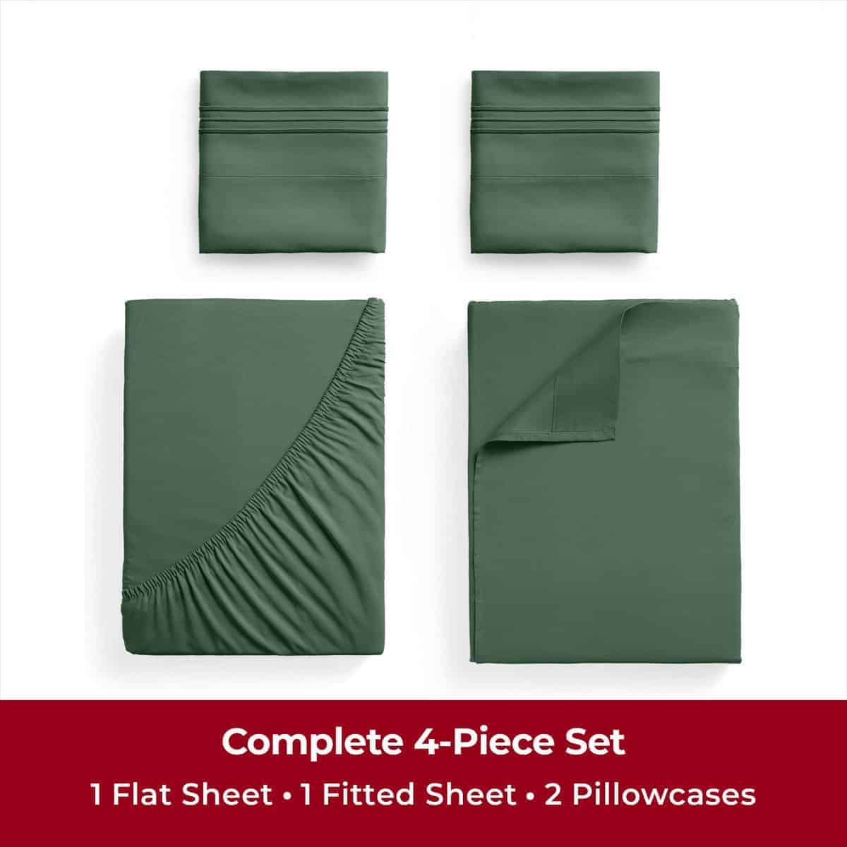 Juego de Ropa de Cama Twin de 4 Piezas – Incluye 1 sábana ajustable (39″x75″x16″), 1 sábana plana (66″x96″), y 2 fundas de almohada (20″x30″) – todas fabricadas con microfibra doble cepillada para una sensación ultra suave. Regula la temperatura para mantenerte acogedor en invierno y fresco en verano.