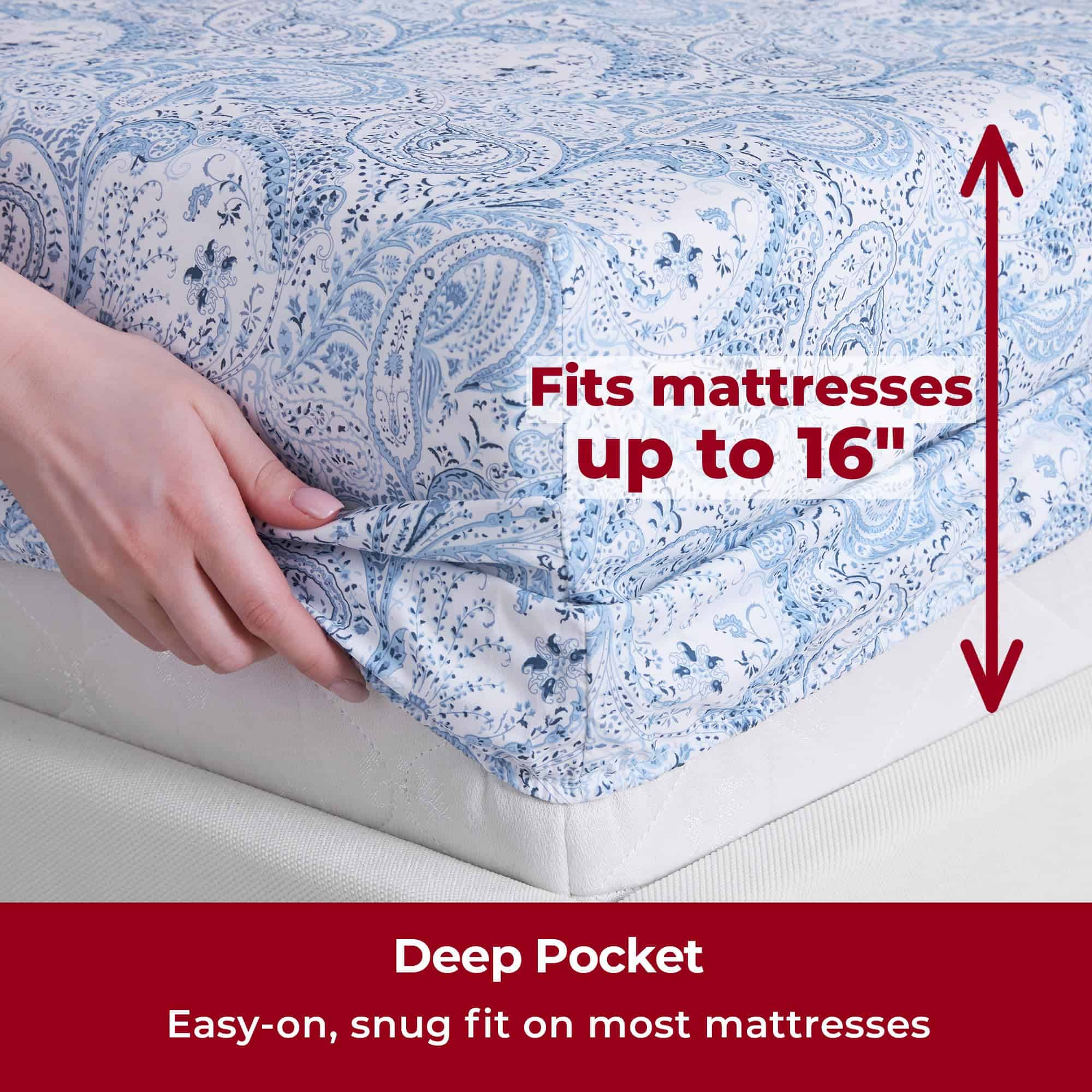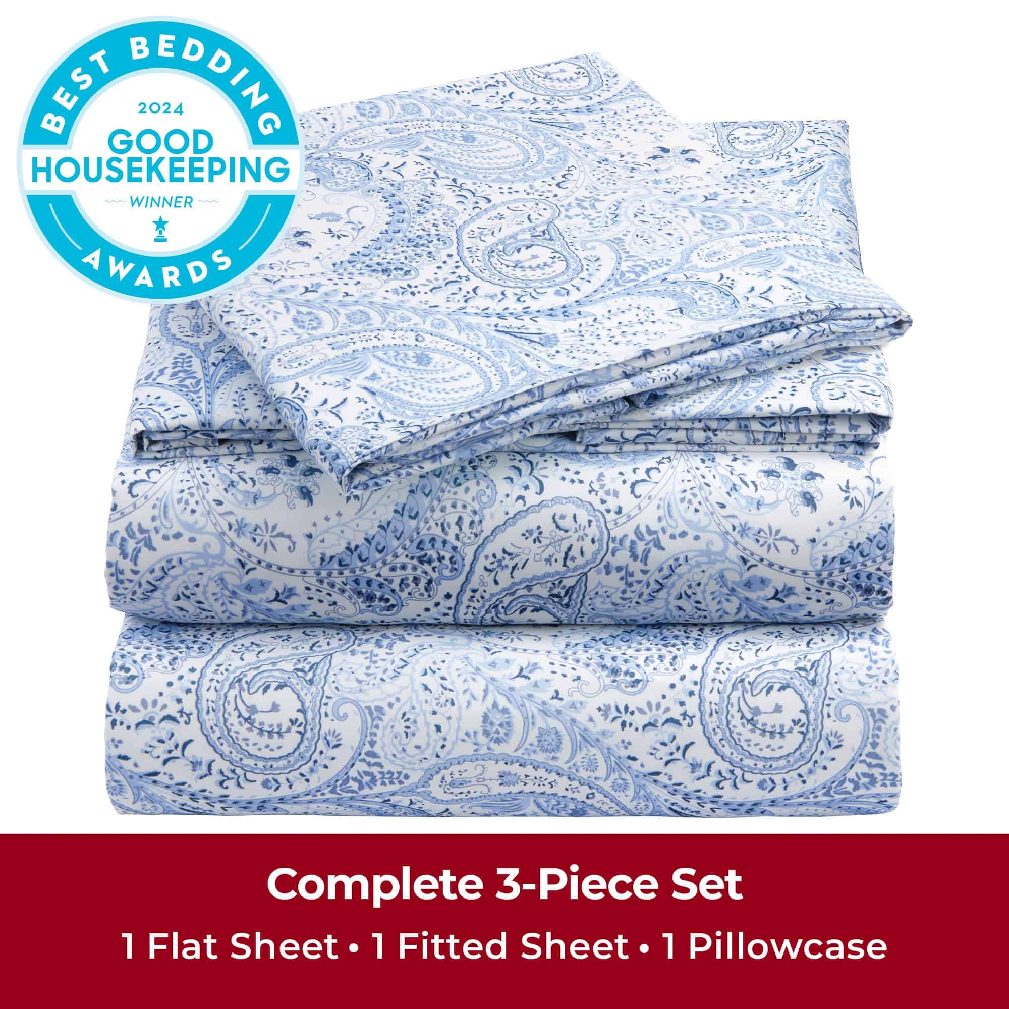 Juego de Sábanas Mellanni Twin XL – 3 -Paisley Azul