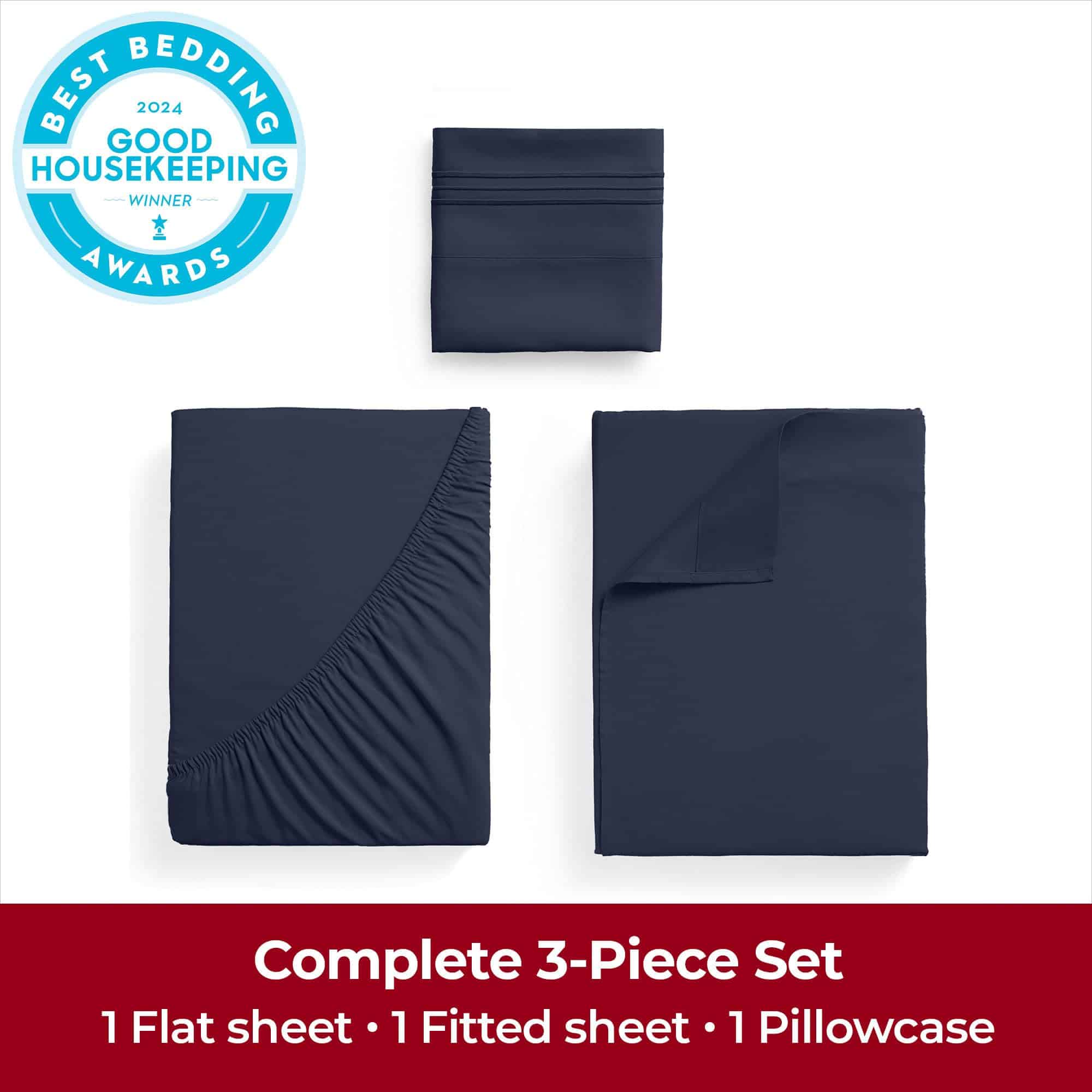 Juego de sábanas Mellanni Twin XL – Colección Iconic Bedding de 3 piezas – Lujo de hotel, Extra suave, Sábanas refrescantes – Resistente a las arrugas, decoloración y manchas (Extra Largo Twin, Azul Marino)