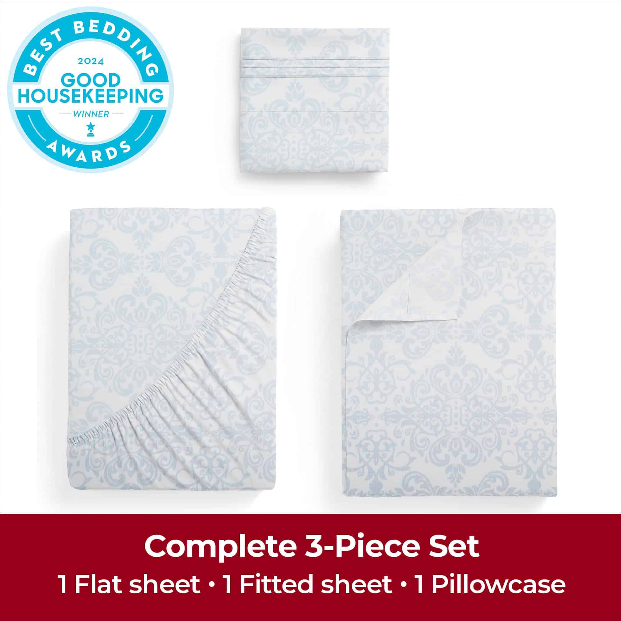 2. Juego completo de ropa de cama Twin XL de 3 piezas – Incluye 1 sábana ajustable (39″x80″x16″), 1 sábana plana (66″x102″) y 1 funda de almohada (20″x30″) – todas elaboradas en microfibra de doble cepillado para una sensación ultra suave. Regulación de temperatura para mantenerte acogedor en invierno y fresco en verano.