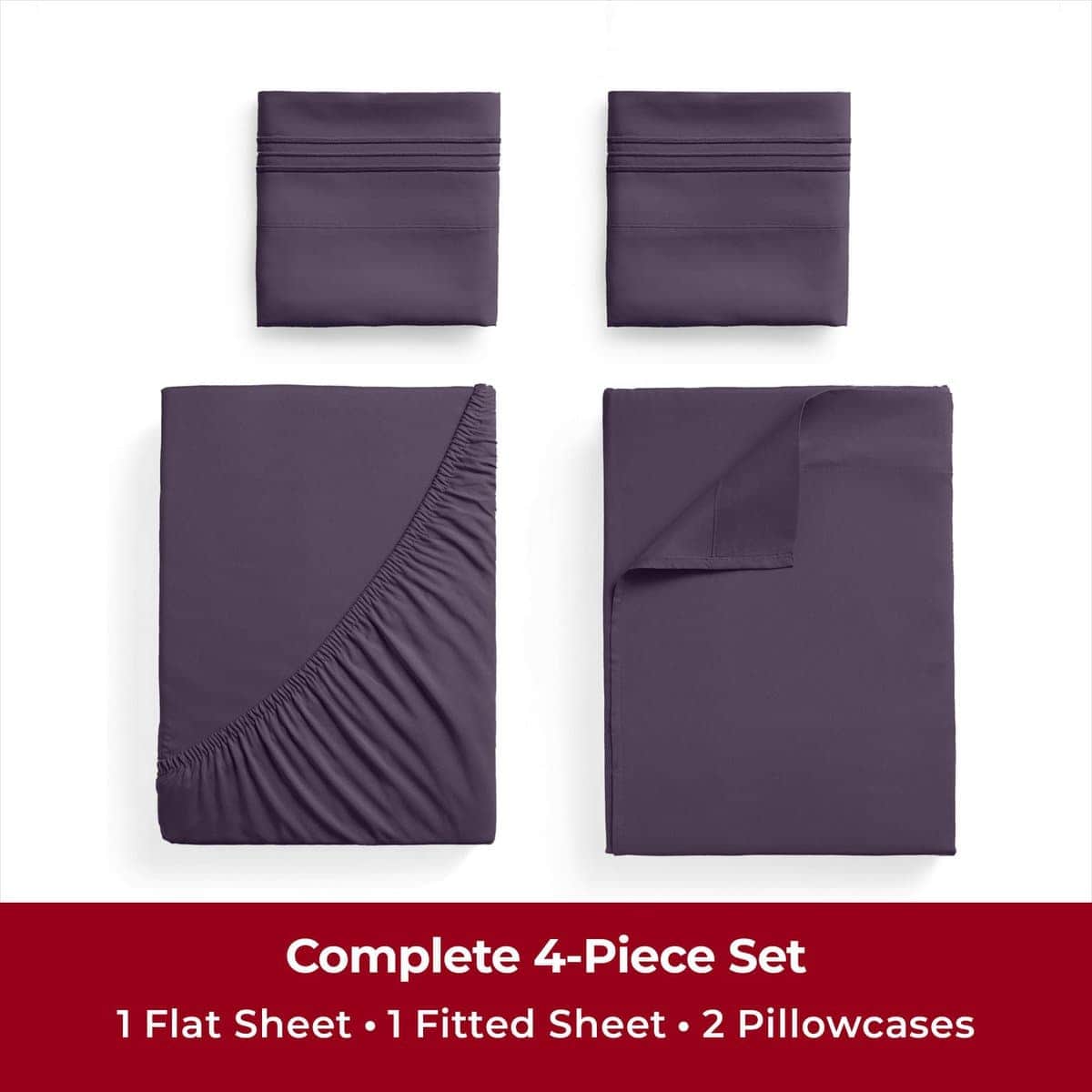 Juego de sábanas Mellanni Twin XL – Colección -Morado