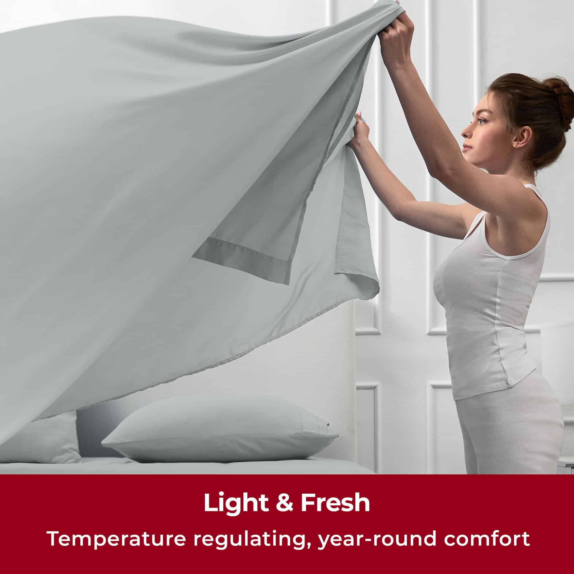 – Lujo ligero para confort durante todo el año – Diseñadas para ser aireadas y ultra-ligeras, nuestras sábanas ofrecen confort sin esfuerzo en cada temporada. Su construcción delgada y transpirable aumenta el flujo de aire, absorbe la humedad y seca rápido. A pesar de su sensación liviana, estas sábanas son excepcionalmente fuertes y más duraderas que el algodón, resistiendo manchas, desgarros y desgaste por lavados frecuentes. Perfectas para hogares ocupados con niños o mascotas.