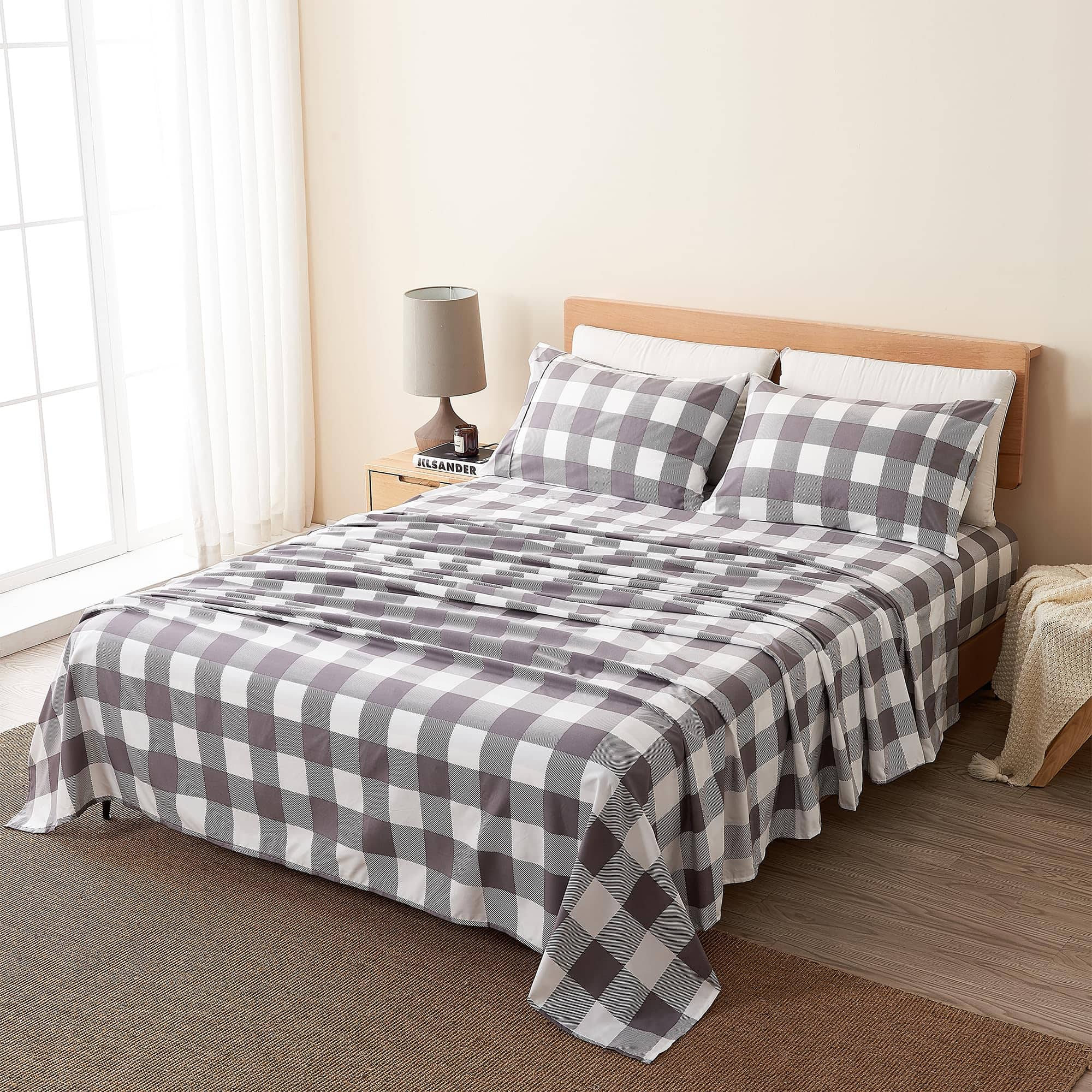 3. Calidad y durabilidad excepcionales: Estas sábanas asequibles de microfibra cepillada ultra suave se sienten súper suaves contra su piel; Son livianas pero duraderas y perfectas para la estética de la decoración de su dormitorio mientras siguen siendo duraderas; Estos juegos de sábanas y fundas de almohada de calidad son los conjuntos de ropa de cama perfectos para una habitación con decoración moderna.