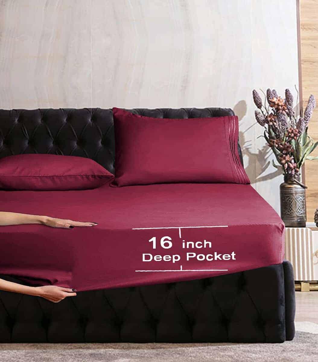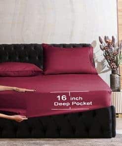 1. Dimensiones de tamaño California King de Mocassi – Sábana encimera 108″ x 102″, Sábana ajustable 72″ x 84″, 4 fundas de almohada King 20″ x 40″ – Se adapta a colchones de hasta 16″ gruesos – Suavidad, transpirabilidad y calidez, más resistente y duradero que el algodón, con la costura más resistente para evitar desgarros Sábana ajustable de bolsillo profundo, completamente elástica para colchones de hasta 16 pulgadas de grosor Resistente a las arrugas y a la decoloración, lavable en agua fría y de secado rápido.