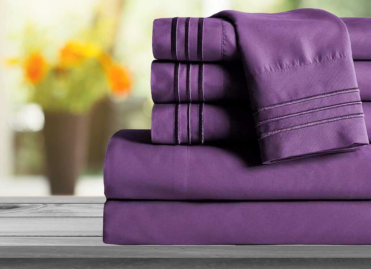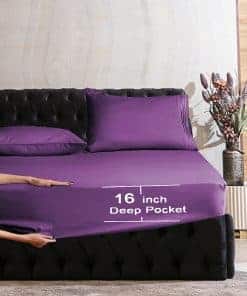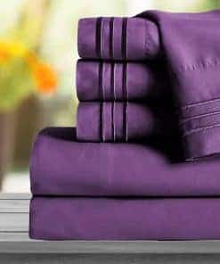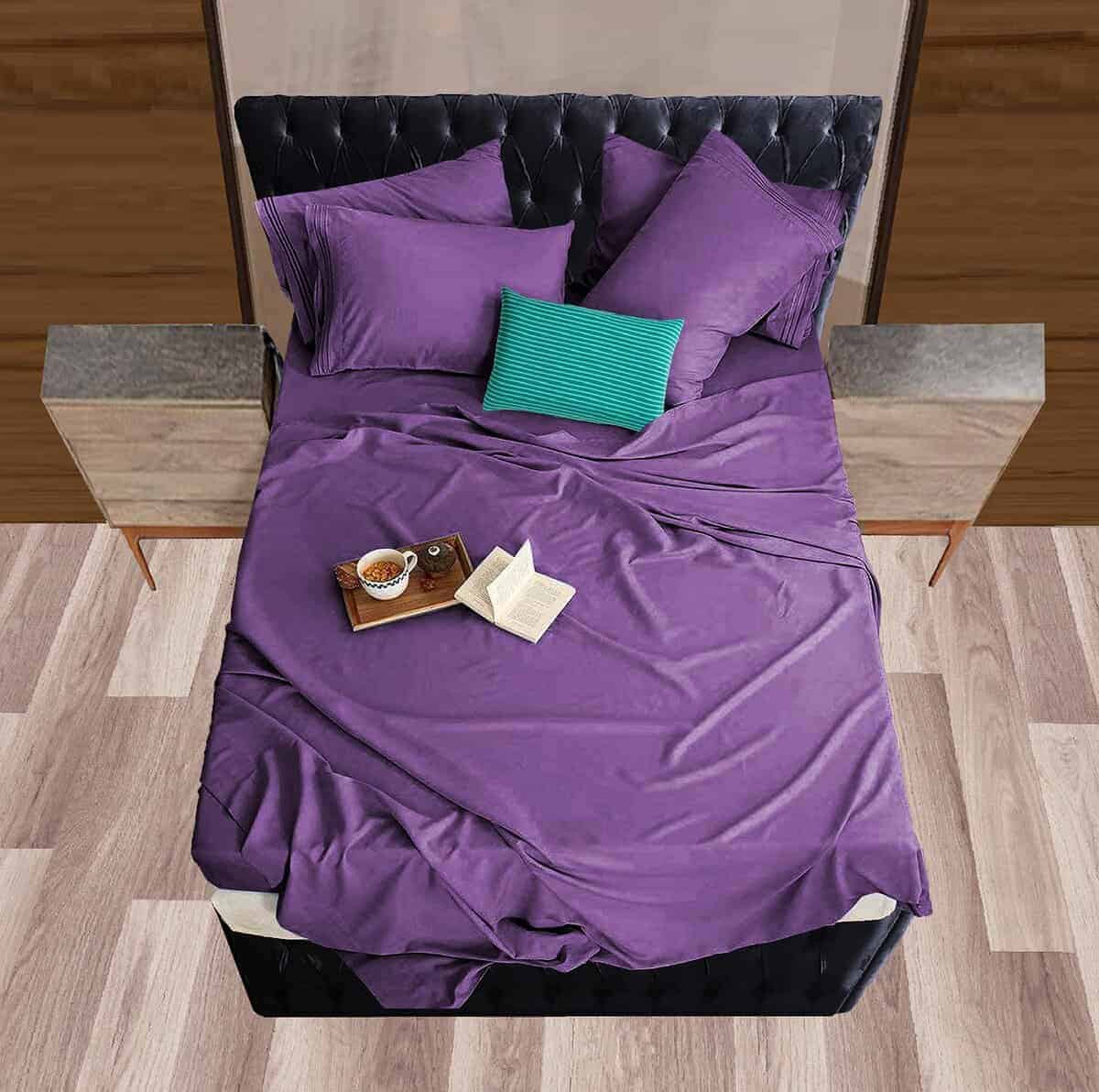 Juego de sábanas Mocassi Full – Luxury Hotel 1800 Premier Bedding Sheets & Pillowcases – Ultra Soft Breathable & Cooling Bed Sheets – Deep Pocket – Wrinkle Resistant – 6 Piece Set – Full, Purple