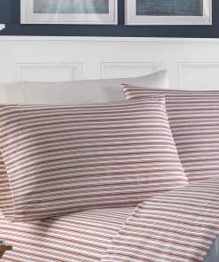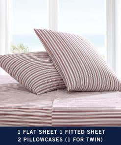 Añade un toque divertido con el juego de sábanas de algodón percal de Nautica. Disponible en una variedad de diseños náuticos adicionales y sólidos, estas sábanas de 200 hilos añadirán una capa extra que es fresca al tacto. Transpirable y ligera, esta construcción de algodón es perfecta para un confort duradero. Cada juego de sábanas incluye una sábana plana, una sábana ajustable y dos fundas de almohada (una para tamaños individual y twin XL). La sábana ajustable completamente elástica evita que se deslice del colchón y asegura un ajuste perfecto. Este juego se adapta a colchones de hasta 15″ de profundidad (12″ para tamaño individual). Este juego es lavable a máquina para un cuidado fácil.