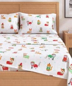 Estas sábanas de franela son ideales para añadir un toque festivo a tu dormitorio durante la temporada navideña. Con una variedad de alegres estampados de Navidad, como perros y gatos con sombreros de Santa, renos y árboles de Navidad, estas sábanas te mantendrán cálido y acogedor durante las frías noches de invierno.