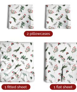¡Ten una temporada navideña muy alegre con nuestro juego de sábanas navideñas de 4 piezas! Incluye 2 fundas de almohada, 1 sábana plana y 1 sábana ajustable. La sábana plana es de 108 pulgadas de ancho por 102 pulgadas de largo, la sábana ajustable es de 80 pulgadas de ancho por 78 pulgadas de largo y las fundas de almohada son de 20 pulgadas de ancho por 40 pulgadas de largo.