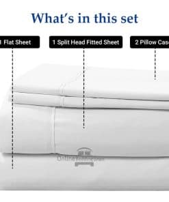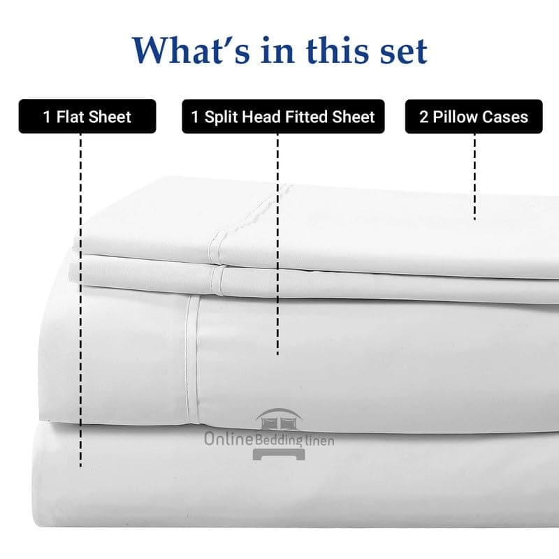 Juego de Sábanas para Cama California King Flex Top, 800TC – Algodón Egipcio con bolsillo profundo de 18″ – Sábanas Divididas para Cama Sleep Number (4 Pzas) Flex Head Cal-King 28″ Sábana Superior Dividida – Blanco