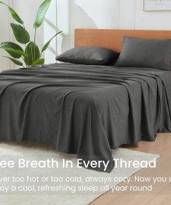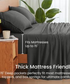 4. JUEGO DE SÁBANAS PARA CAMA COMPLETA DE BOLSILLO PROFUNDO – Este juego de sábanas para cama completa incluye 1 sábana plana (81 x 96), 1 sábana ajustable (54 x 75) y 2 fundas de almohada estándar (20 x 30). Los bolsillos profundos de 15″ se adaptarán a la mayoría de los colchones, incluidos los que se combinan con toppers. El dobladillo profundo de 8″ de las fundas de almohada mantendrá tus almohadas en su lugar, ¡nunca se deslizarán!.