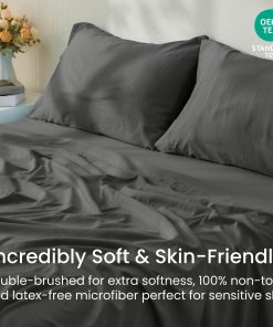 3. SUAVES, SEGURAS Y ACOGEDORAS – La tela está doble cepillada para un acabado más suave y transpirable, ni demasiado fría ni demasiado caliente, manteniéndote cómodo durante todo el año. Certificado por OEKO-TEX (Certificación NO.: SH025 252721), nuestro juego de sábanas para cama completa está libre de sustancias dañinas y alérgenos como el látex. ¡Los bebés y las pieles sensibles pueden usarlo sin preocupaciones!.