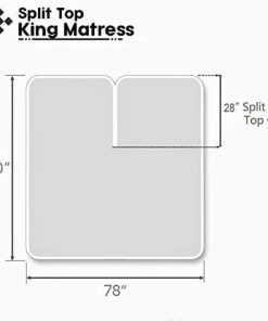 3. El juego de sábanas Split Top King incluye: una sábana plana de 110″ de ancho x 102″ de largo, una sábana ajustable de dividida Top King de 78″ de ancho x 80″ de largo con 6 bolsillos de esquina para adaptarse a un colchón de 28 pulgadas de bolsillo profundo y dos fundas de almohada King de 20×40″.