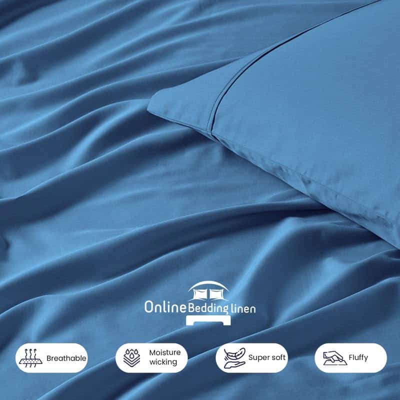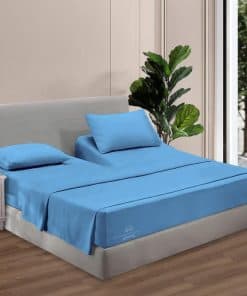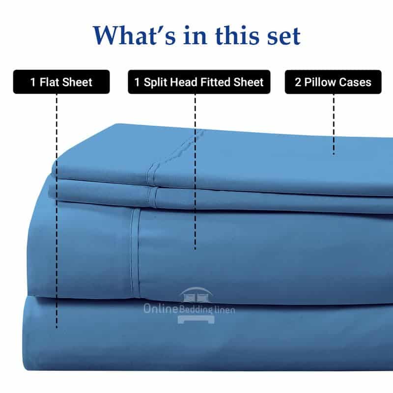 Juego de Sábanas para Cama Flex Top California King Size, 800TC – Algodón Egipcio 18″ Bolsillo Profundo – Sábana Superior Dividida King para Cama Sleep Number (4 Piezas) Flex Head Cal-King 30″ Sábana Superior Dividida – Azul Mediterráneo