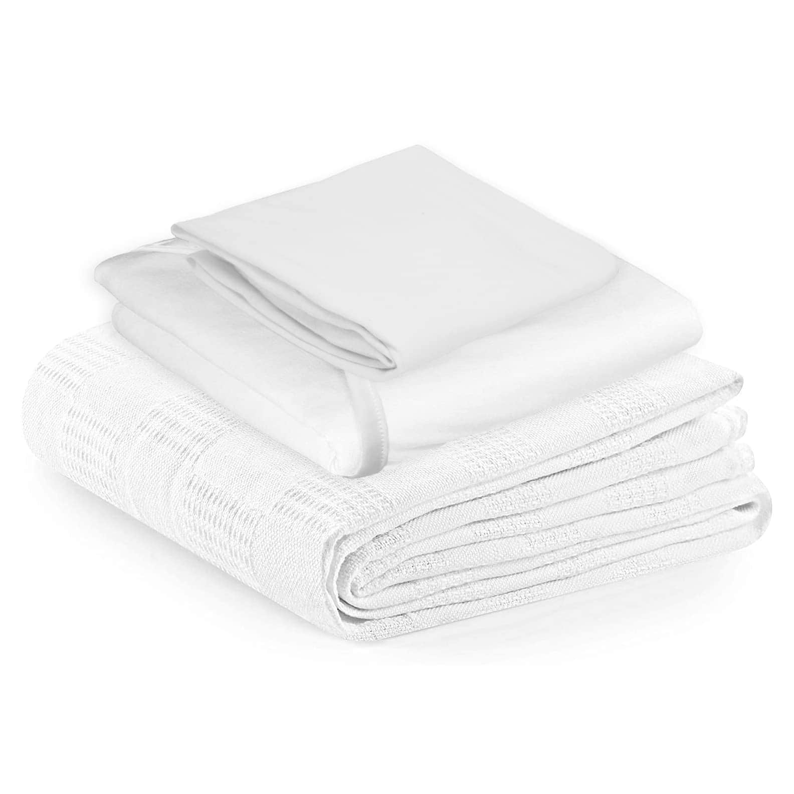 Juego de sábana, funda de almohada y manta. SÁBANA: Jersey de algodón/poliéster. Se ajusta a camas hospitalarias y de cuidados en el hogar de 84″ x 36″ x 16″. MANTA 100% algodón. FUND PILLOWCASE 100% algodón. Mide 90″x 60″. Importado. Suave y duradero. Ideal para hospitales, cuidado en el hogar y establecimientos de cuidado a largo plazo. Materiales premium. Sábanas de hospital. Lavable a máquina. Diseñado para durar. Todo en uno. Ropa de cama hospitalaria en una caja.